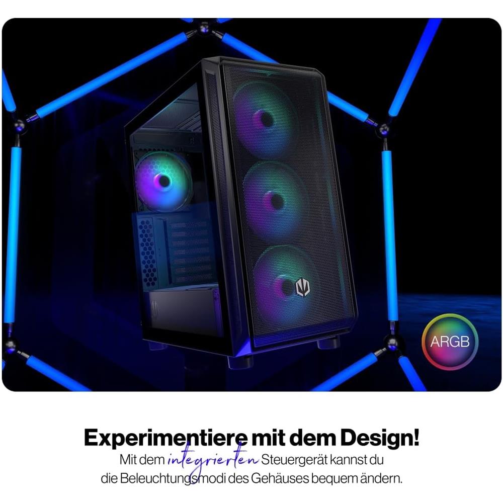 ENDORFY Arx 500 ARGB, ATX PC-Gehäuse, inkl. 4x 140mm ARGB PWM-Lüfter, Seitenteil aus gehärtetem Glas | EY2A011