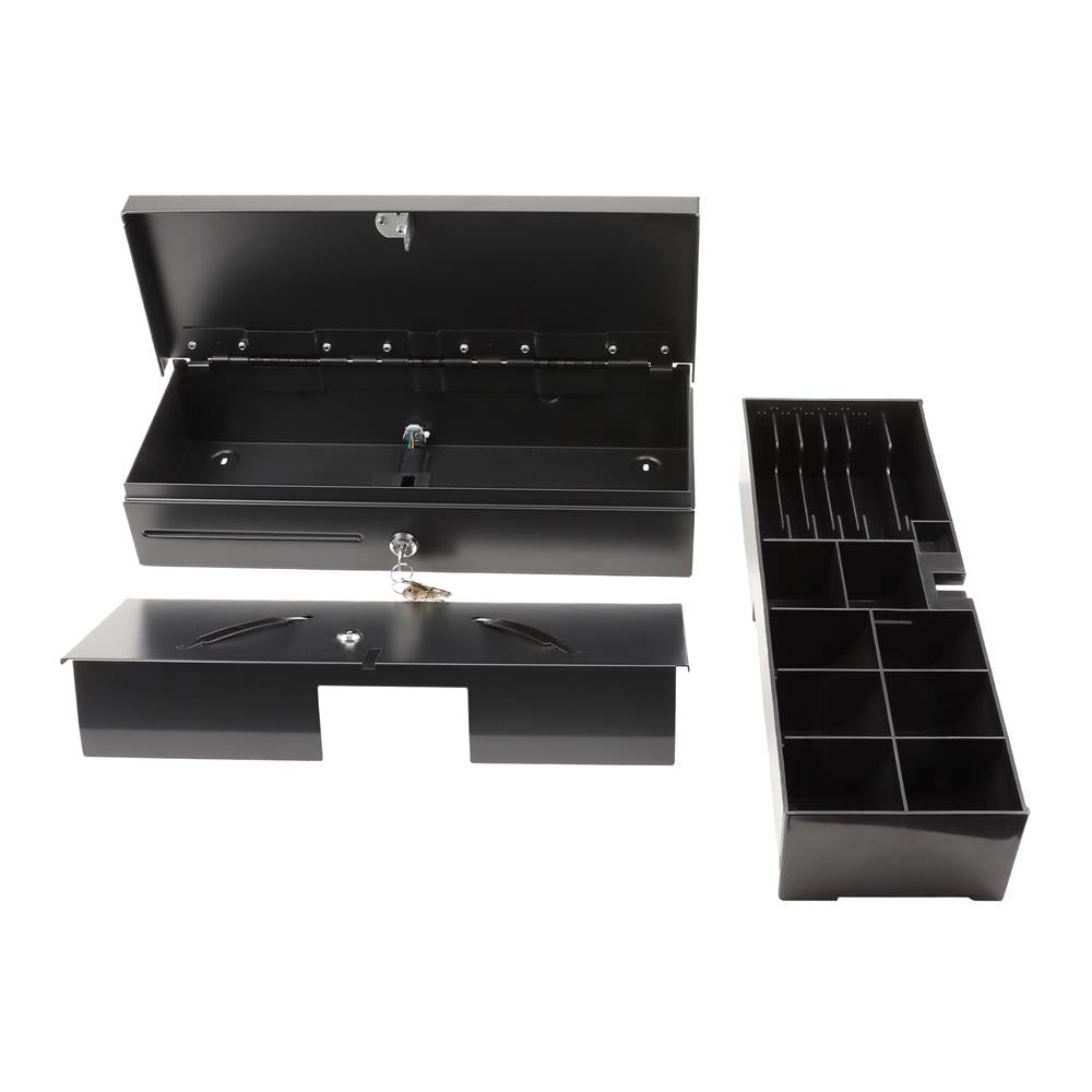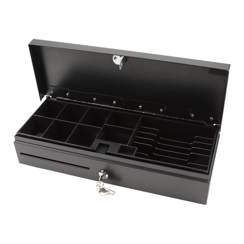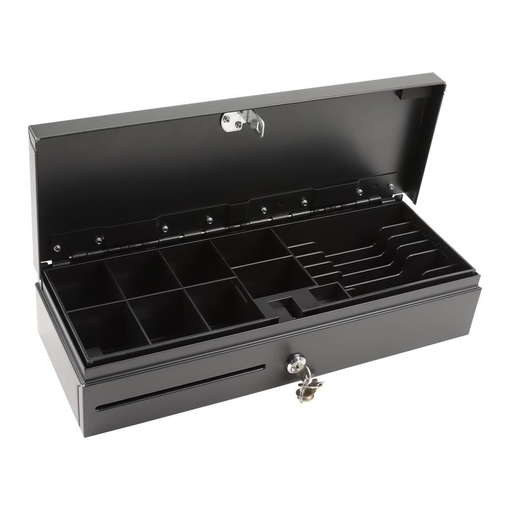 Die Klapp-Kassenlade (Fliptop) HS 170 bietet eine robuste und zuverlässige Lösung für den professionellen Einsatz. Sie überzeugt mit einem Ganzstahlgehäuse und einem starken Scharniersystem, das für hohe Stabilität und Langlebigkeit sorgt. Die Lade ist mit 8 Münzfächern und 6 Scheinfächern ausgestattet, die über einen verstellbaren Banknotentrenner aus ABS-Kunststoff flexibel organisiert werden können. Der herausnehmbare Einsatz inklusive Deckel sorgt für eine einfache Handhabung und Reinigung. Mit der Unterstützung von 12-24 V RJ12 ist sie mit einer Vielzahl von Kassensystemen kompatibel. Zusätzliche Funktionen wie der Mikroschalter und das Schloss mit 2 Schlüsseln machen diese Kassenlade zu einer praktischen und sicheren Wahl für den täglichen Einsatz.