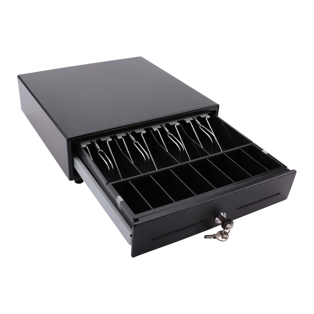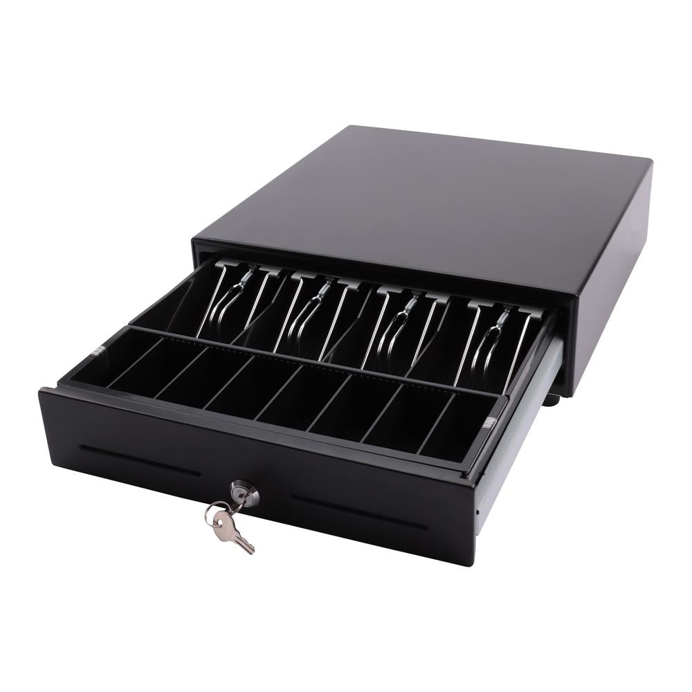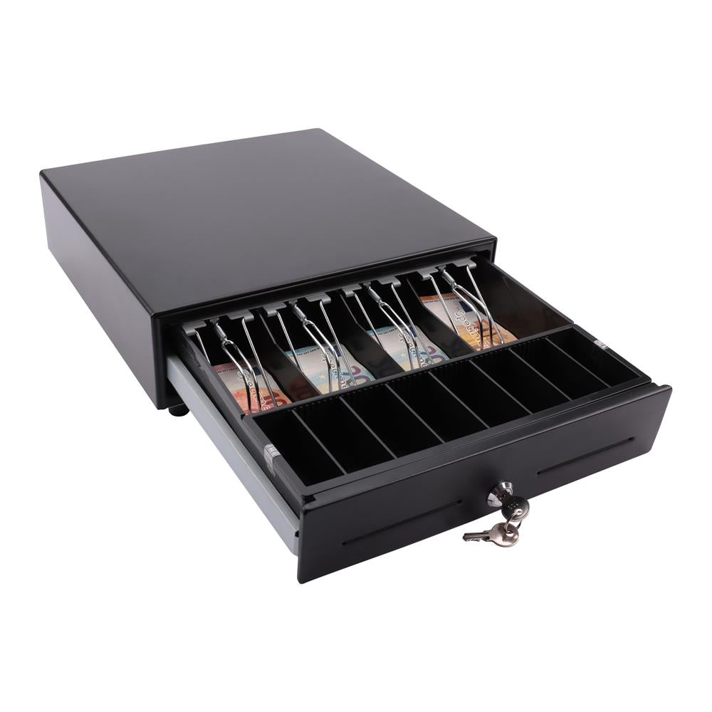 Diese robuste Geldlade aus Metall bietet eine sichere und langlebige Aufbewahrung für Bargeld und eignet sich hervorragend für den Einsatz in Kassensystemen. Sie verfügt über 8 Münzfächer und 4 Scheinfächer, die jeweils mit stabilen Metall-Halteklammern für eine zuverlässige Fixierung der Banknoten ausgestattet sind. Mit einer Betriebsspannung von 12–14 V und einem integrierten Mikroschalter ist die Lade optimal für den Betrieb in verschiedenen Kassensystemen. Ein Schloss mit 2 Schlüsseln sorgt für zusätzliche Sicherheit, sodass Ihre Bargeldbestände gut geschützt sind.