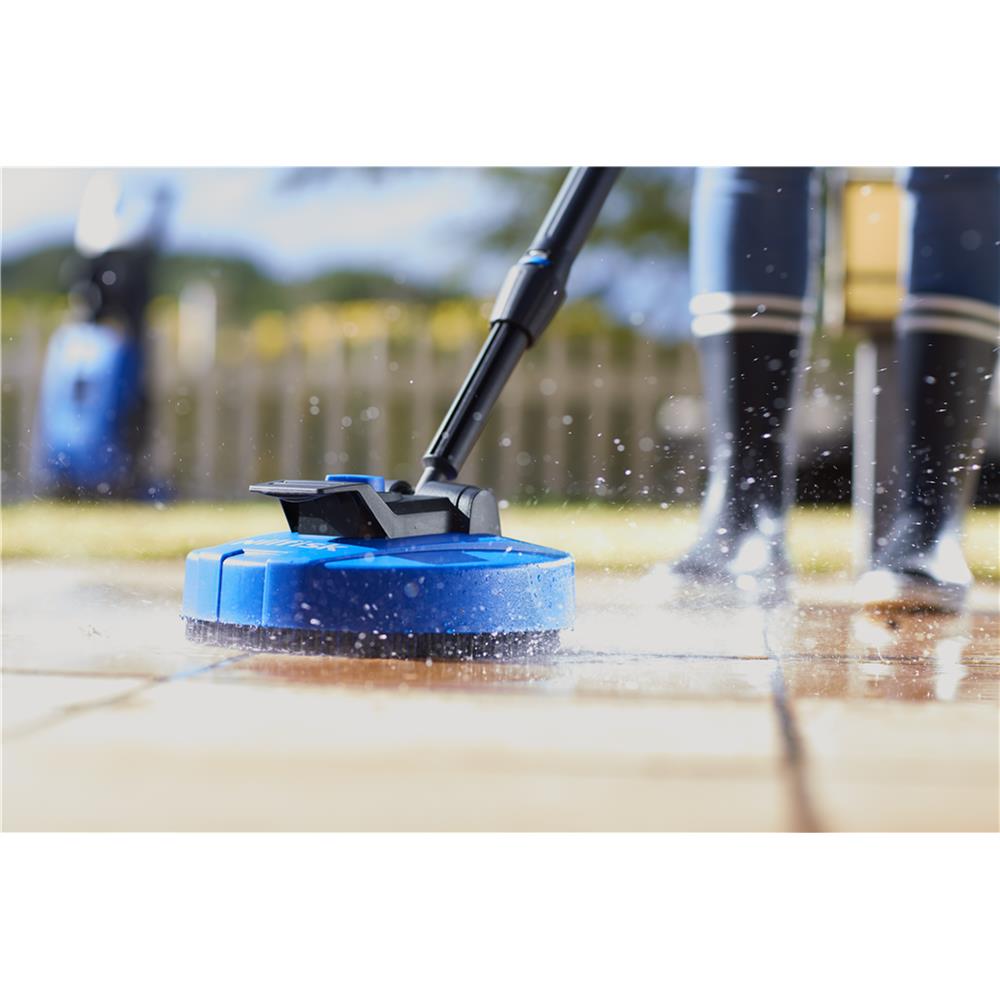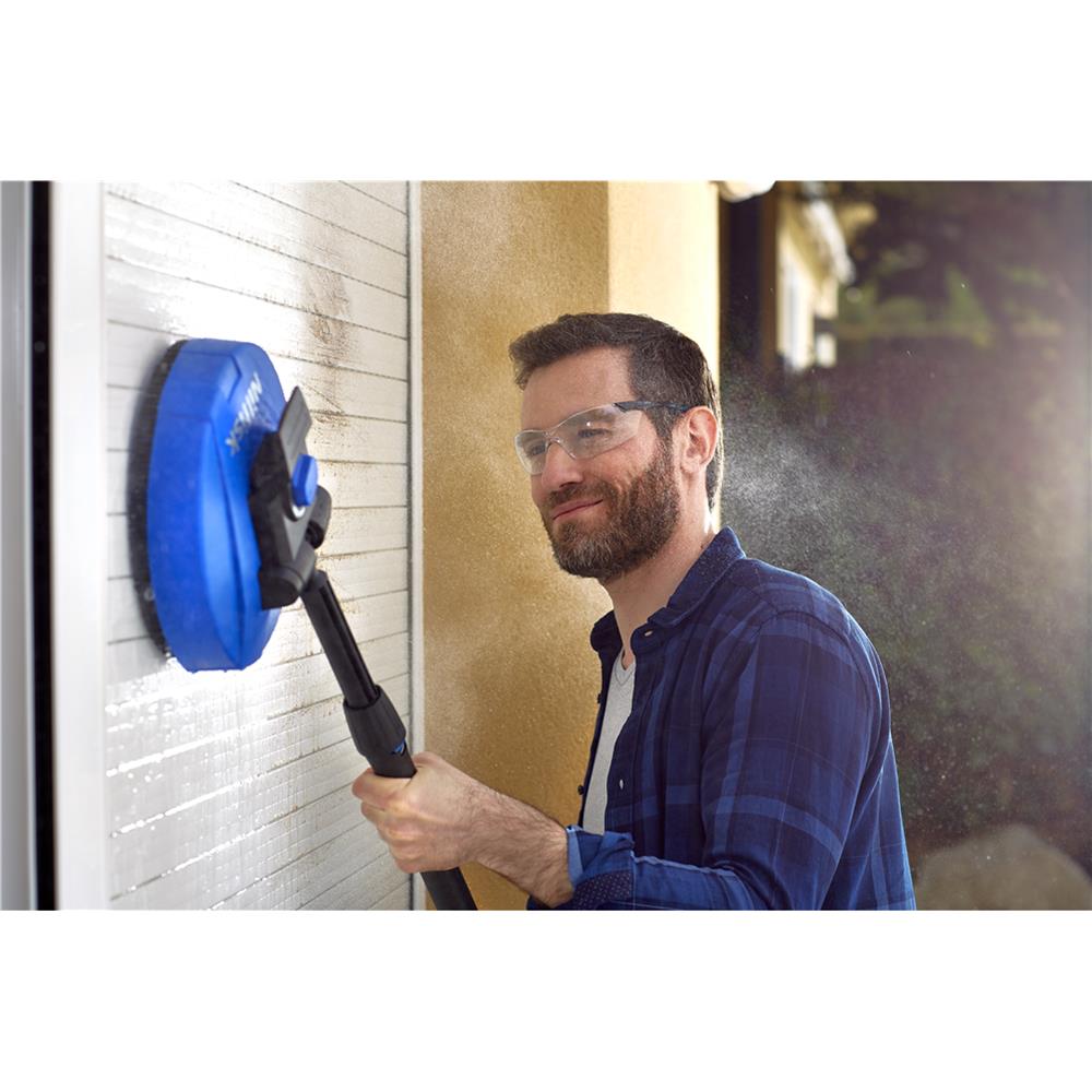 Mit dem Zubehörteil Patio Terrassenreiniger erledigen Sie die Reinigung von Einfahrten, Schuppen oder Zäunen im Handumdrehen. Dank seiner einstellbaren Druckregulierung für den Einsatz auf harten und weichen Oberflächen – einschließlich Holz, Fliesen, Beton und Stein – ist das Zubehörteil außerordentlich benutzerfreundlich und lässt sich dank des schwenkbaren Kopfes sowohl vertikal als auch horizontal verwenden.