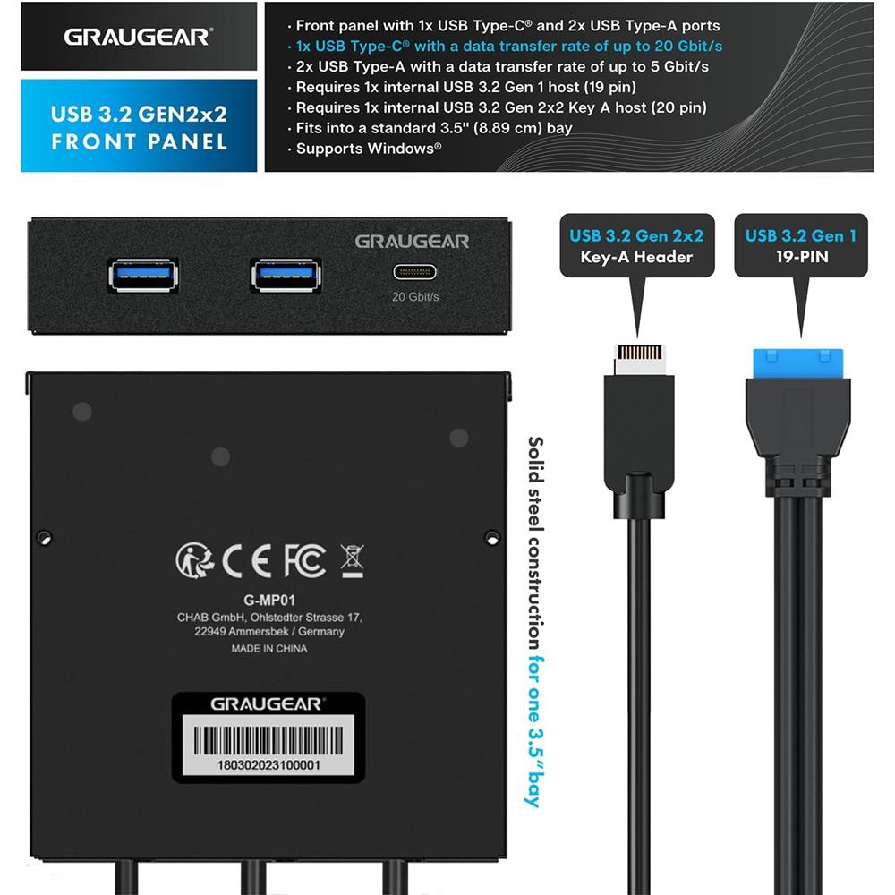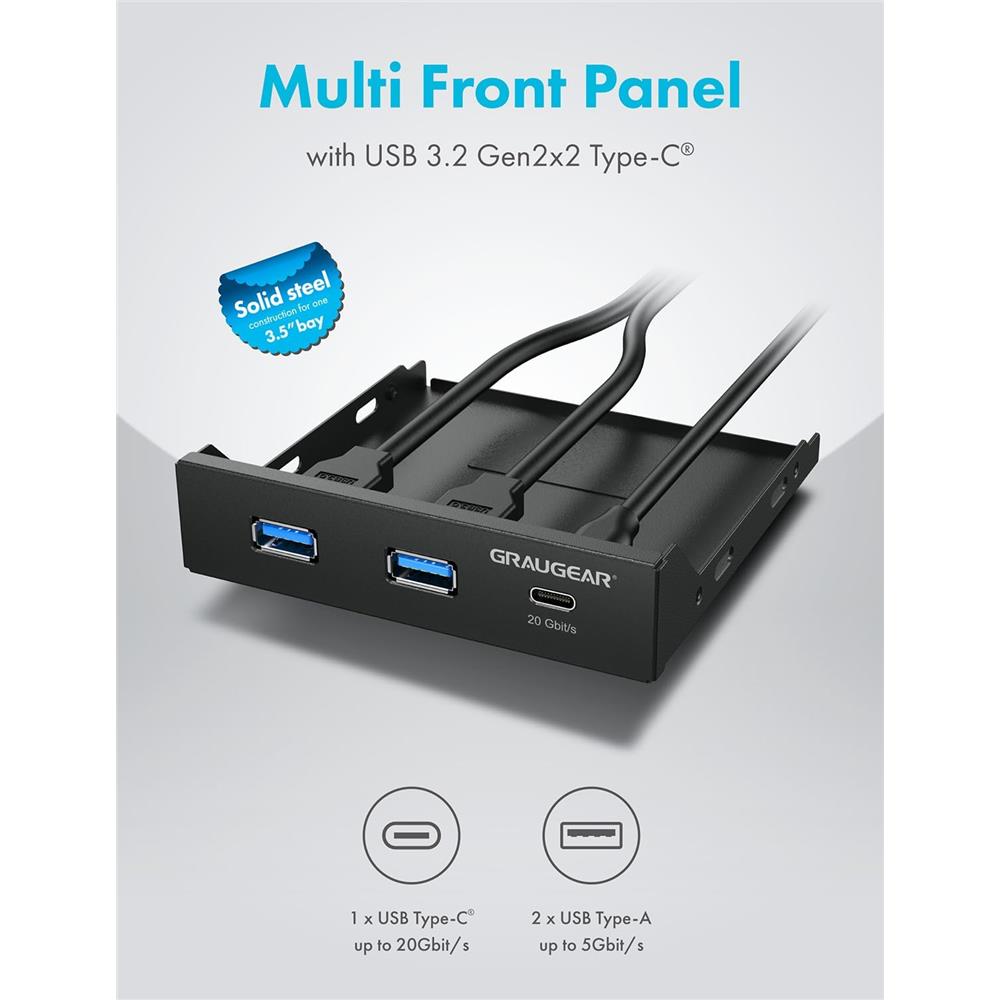 GRAUGEAR Multi Frontblende mit USB 3.2 Gen2x2 Type-C