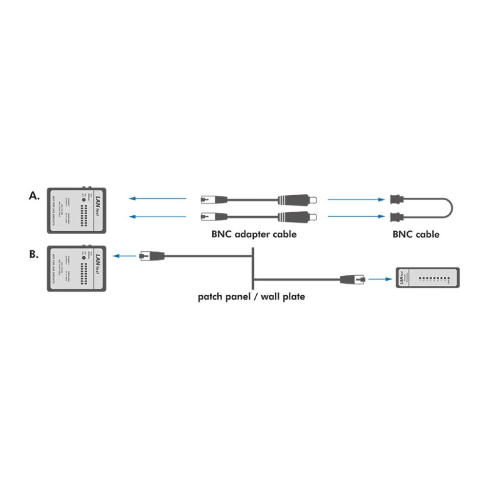 - Einfaches Ablesen des Kabelstatus und Überprüfung von Kabeldurchgang, Kurzschluss und Fehlverdrahtung.