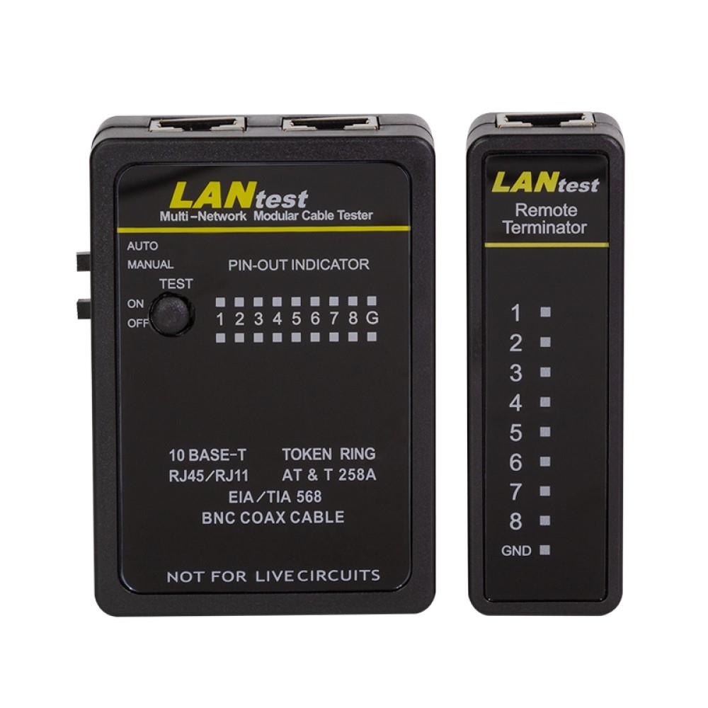 Kabeltestgerät von LogiLink für RJ11, RJ12, RJ45 Adernpaare und BNC. Mit der dazugehörigen Remote Einheit kann eine komplette Leitung auch nach der Installation geprüft werden. Einfache Bedienung, Anzeige über LEDs zum Testen von RJ45, RJ12 und RJ11 nach den gültigen Standards. Das Gerät prüft alle Adernpaare und Schirmung, ob ein Signal erfolgreich von einer Seite zur anderen gelangt ist.