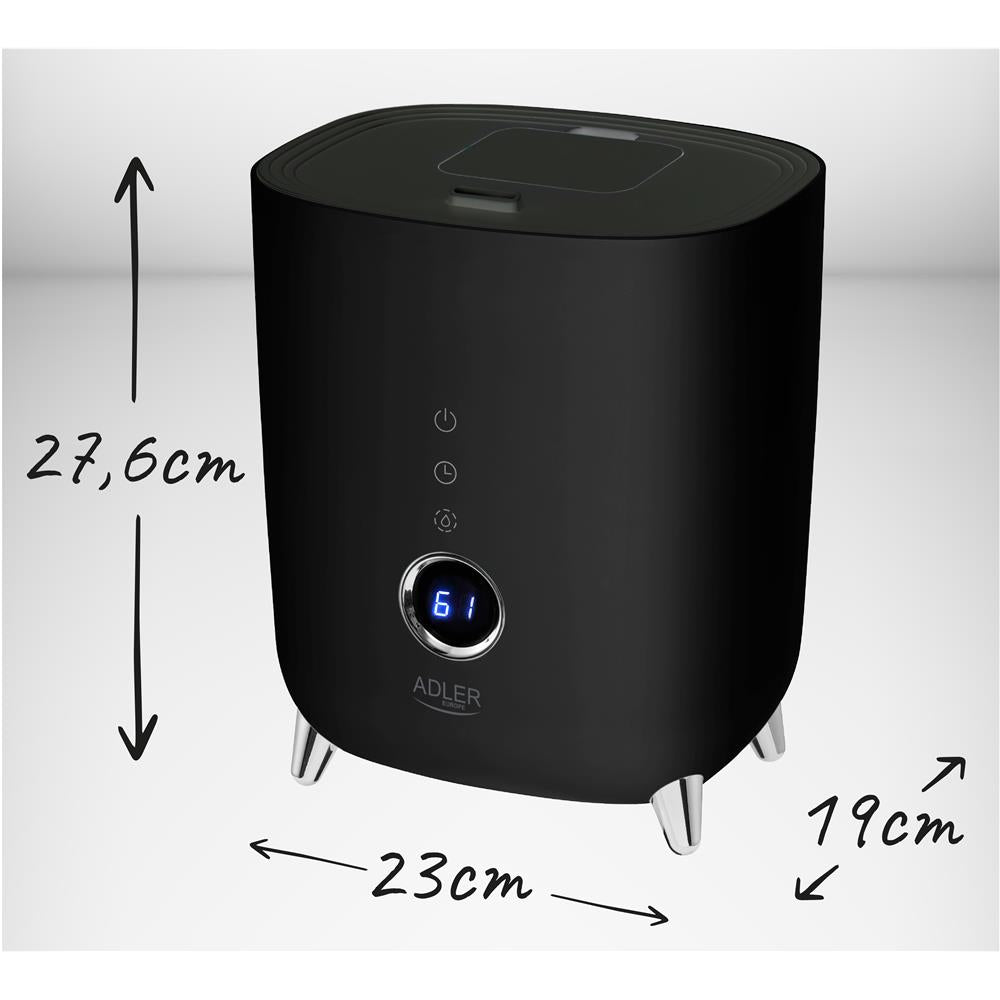 Der Adler-Ultraschall-Luftbefeuchter wird Sie mit seiner fortschrittlichen Technologie und Funktionalität überraschen, die es Ihnen ermöglicht, ideale Bedingungen für die Luftfeuchtigkeit in Ihrem Innenraum zu schaffen. Das Gerät ist mit einem LED-Display mit Berührungstasten ausgestattet, dank derer es eine bequeme Bedienung und eine präzise Kontrolle der Befeuchtung ermöglicht. Dank des einzigartigen Designs, das es Ihnen ermöglicht, den Wassertank von oben zu befüllen, ist die Benutzung des Luftbefeuchters noch einfacher und ergonomischer geworden. Das Gerät überwacht und zeigt die aktuelle Raumluftfeuchtigkeit in Echtzeit an, so dass Sie die Bedingungen im Auge behalten können.