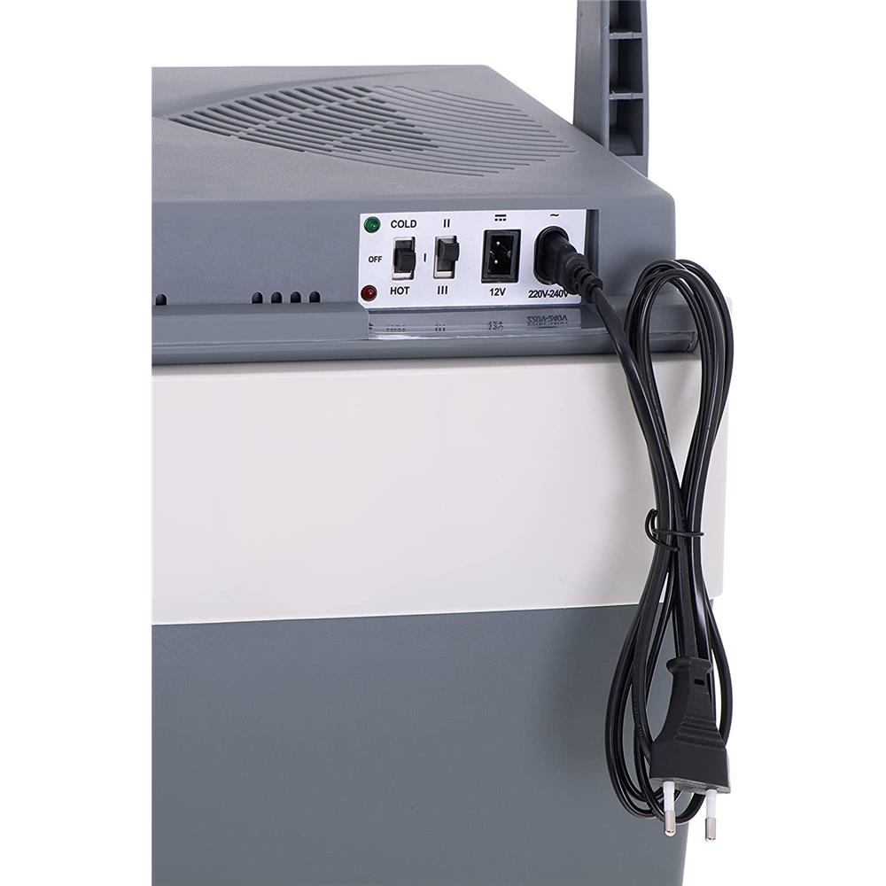 Inklusive Kabel für den Anschluss an 12V und 230V. So können Sie Ihre Speisen und Getränke gekühlt überall hin mitnehmen, um sie jederzeit trinken zu können.