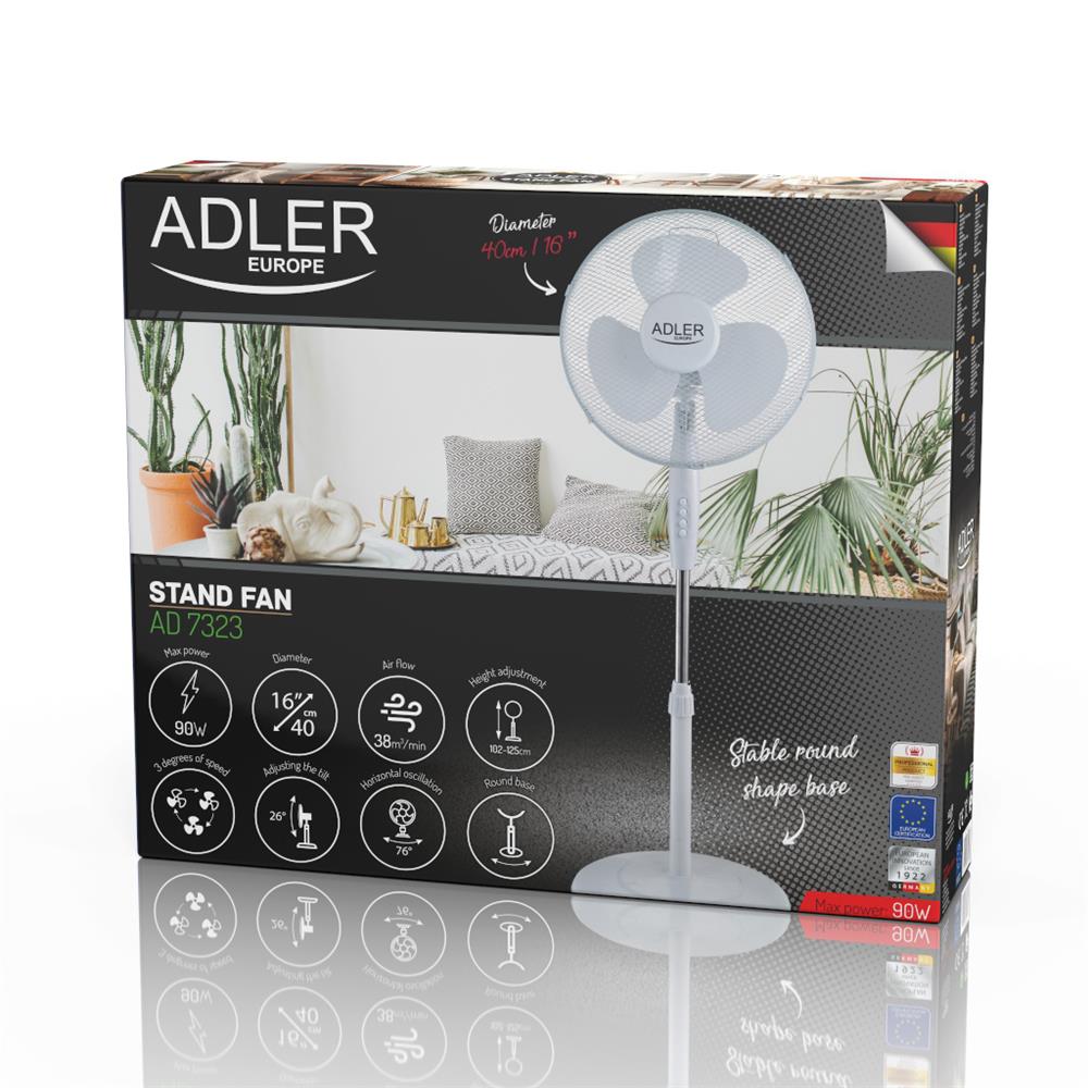 Adler AD7323w Standventilator Durchmesser 40 cm Weiß Höhenverstellbar mit Standfuß