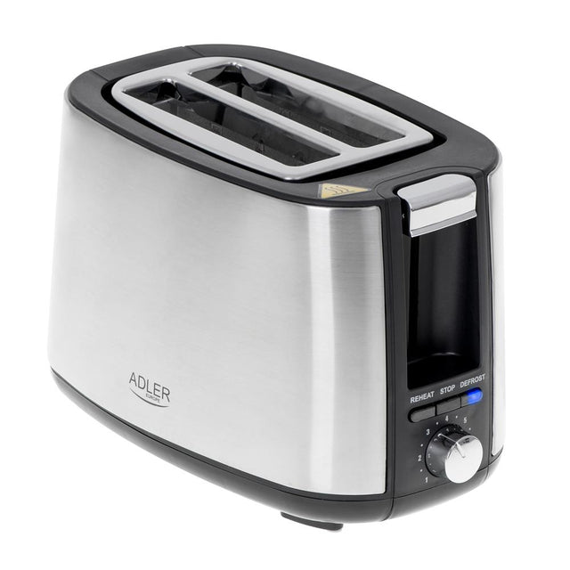 Adler AD 3214 Toaster in Silber, 900W, mit 7 Bräunungsstufen, Brötchenaufsatz und Krümelschublade
