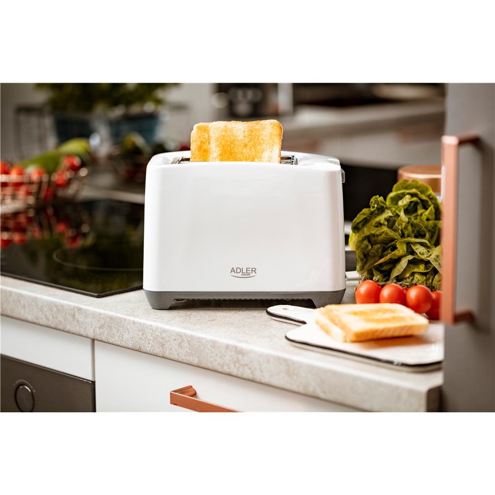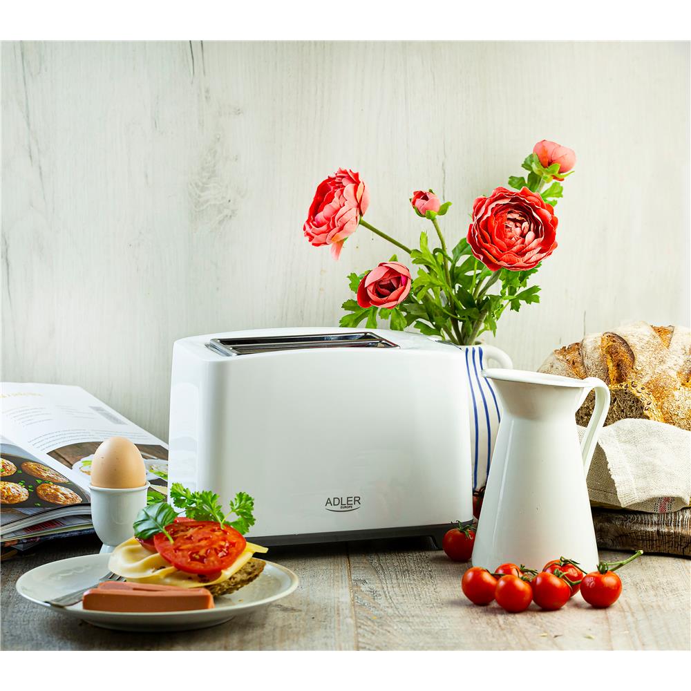 Adler AD 3216 Toaster in Weiß, mit Brötchenaufsatz, Auftaufunktion und Abschaltautomatik