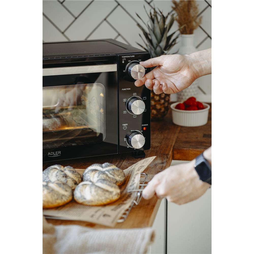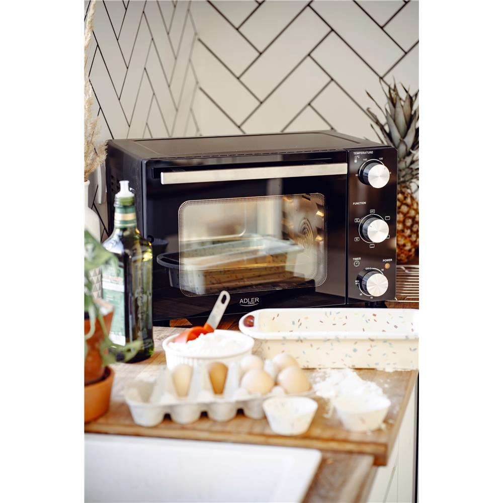 Adler AD 6024 Mini-Backofen 22 Liter, Schwarz, 0-230°C, mit Timer-Endarbeitston und 5 Backmodi