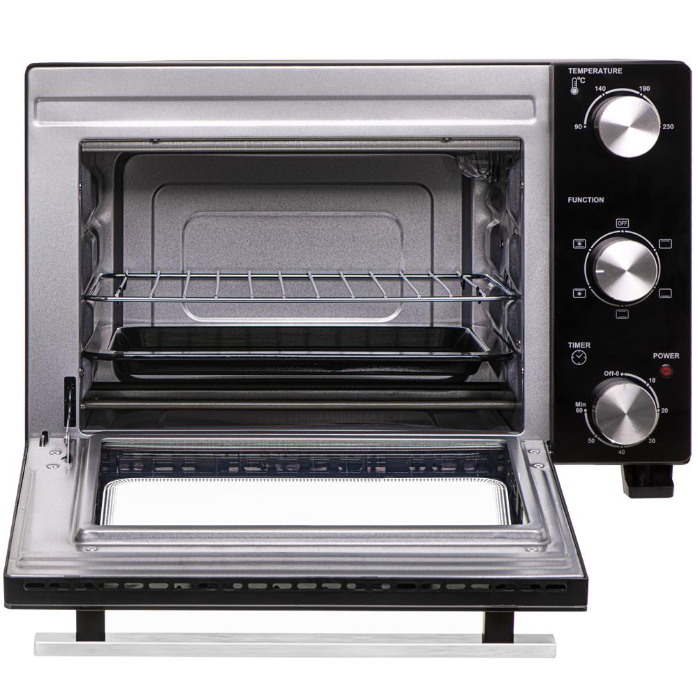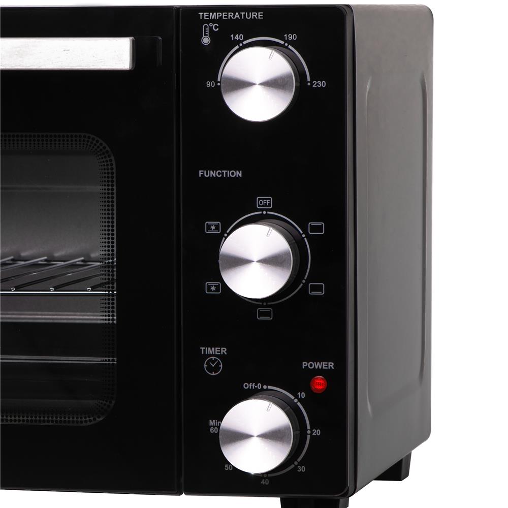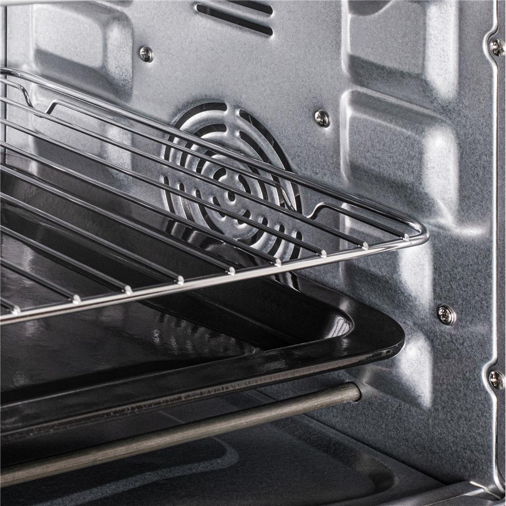 Der Backofen ist mit einer doppelwandigen Glastür ausgestattet, die für eine bessere Wärmedämmung sorgt, so dass die Wärme im Inneren des Ofens bleibt und nicht nach außen entweicht. Dies trägt zu einer effizienten Energienutzung bei und spart Zeit beim Backen. Der eingebaute Timer mit einer Zeitspanne von 0 bis 60 Minuten gibt Ihnen noch mehr Freiheit in der Küche. Jetzt müssen Sie nicht mehr befürchten, dass Sie ein Gericht im Ofen vergessen. Stellen Sie die richtige Zeit ein und überlassen Sie dem Backofen den Rest. Ein akustisches Signal informiert Sie, wenn Ihre Mahlzeit servierbereit ist.