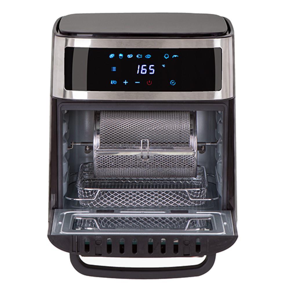 Der drehbare Frittierkorb erleichtert die Zubereitung kleinerer Speisen: Pommes, Shrimps, Gemüse. Das Fassungsvermögen des Backofens beträgt 13 Liter, bereiten Sie sofort eine Mahlzeit für die ganze Familie zu oder backen Sie einfach Ihre Lieblingsbeilagen. Der Backofen verfügt über ein klares weißes LED-Display und ein Touchpanel, mit dem Sie ganz einfach Ihr bevorzugtes Backprogramm auswählen und die verstrichene Zeit messen können. Die Möglichkeit, den Gerätestart von 1 auf 720 Minuten zu verzögern, erleichtert die Planung eines Abendessens für die ganze Familie.