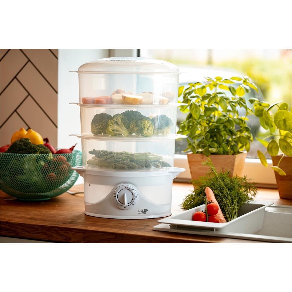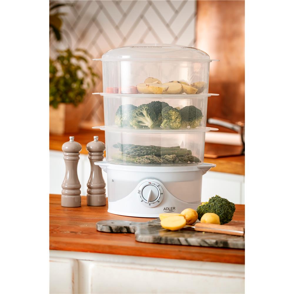 Adler AD 633 Elektrischer Dampfgarer Weiß 800 Watt Dampfgarren ohne Fett 3 Etagen