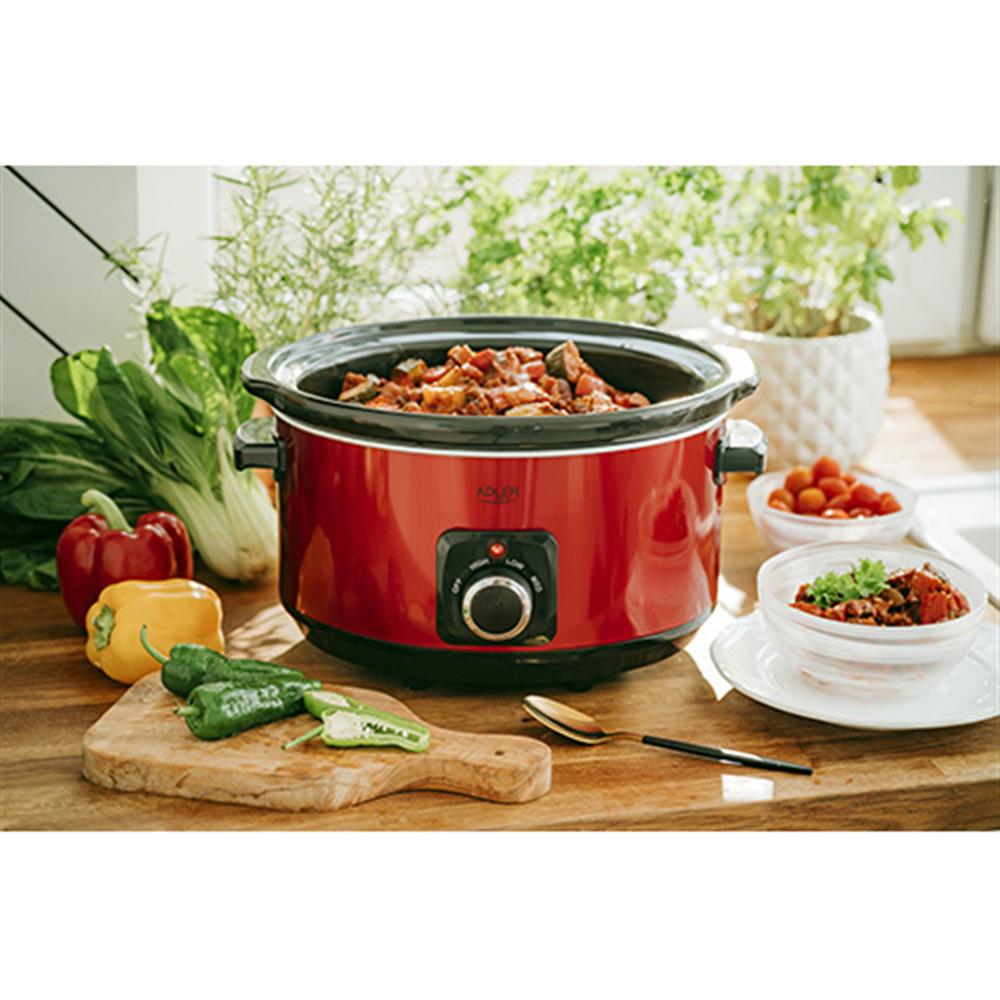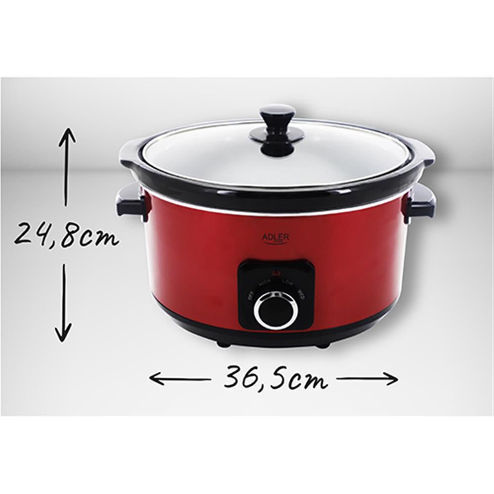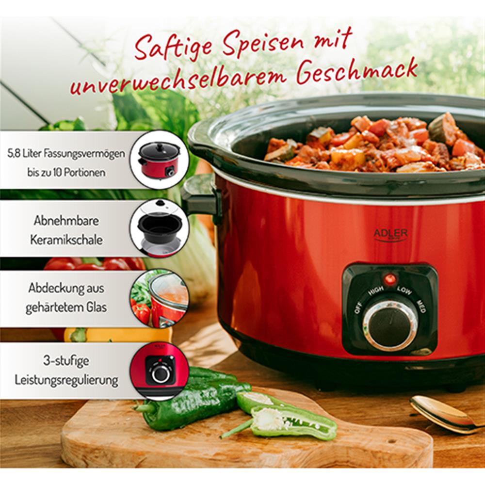 Adler AD 6413r Langsamkocher 5,8L 290W Rot Schongarer Multikocher Gartopf Slowcooker