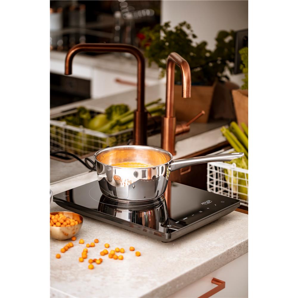 Ein Einfeldinduktionskochplatte kann zum Aufwärmen oder zur Zubereitung von Mahlzeiten verwendet werden, die nicht die gleichzeitige Verwendung von zwei Töpfen oder Pfannen erfordern. Die Induktionskochplatte AD 6513 kann als Alternative verwendet werden, wenn der Hauptherd nicht verfügbar ist, oder sie kann zum festen Bestandteil eines Sommerhauses, einer kleinen Küche, eines gemieteten Zimmers oder eines anderen Raums werden. Die Induktionskochplatte ermöglicht es Ihnen, die Heizleistung auf zwei Arten zu regulieren, indem Sie die gewünschte Temperatur oder Leistung einstellen. Die Induktionskochplatte zeichnet sich durch eine hohe Energieeffizienz aus, die die traditionellen Elektroherde weit übertrifft - sie ist eine ausgezeichnete Wahl für diejenigen, die auf die Höhe der Stromrechnung achten.