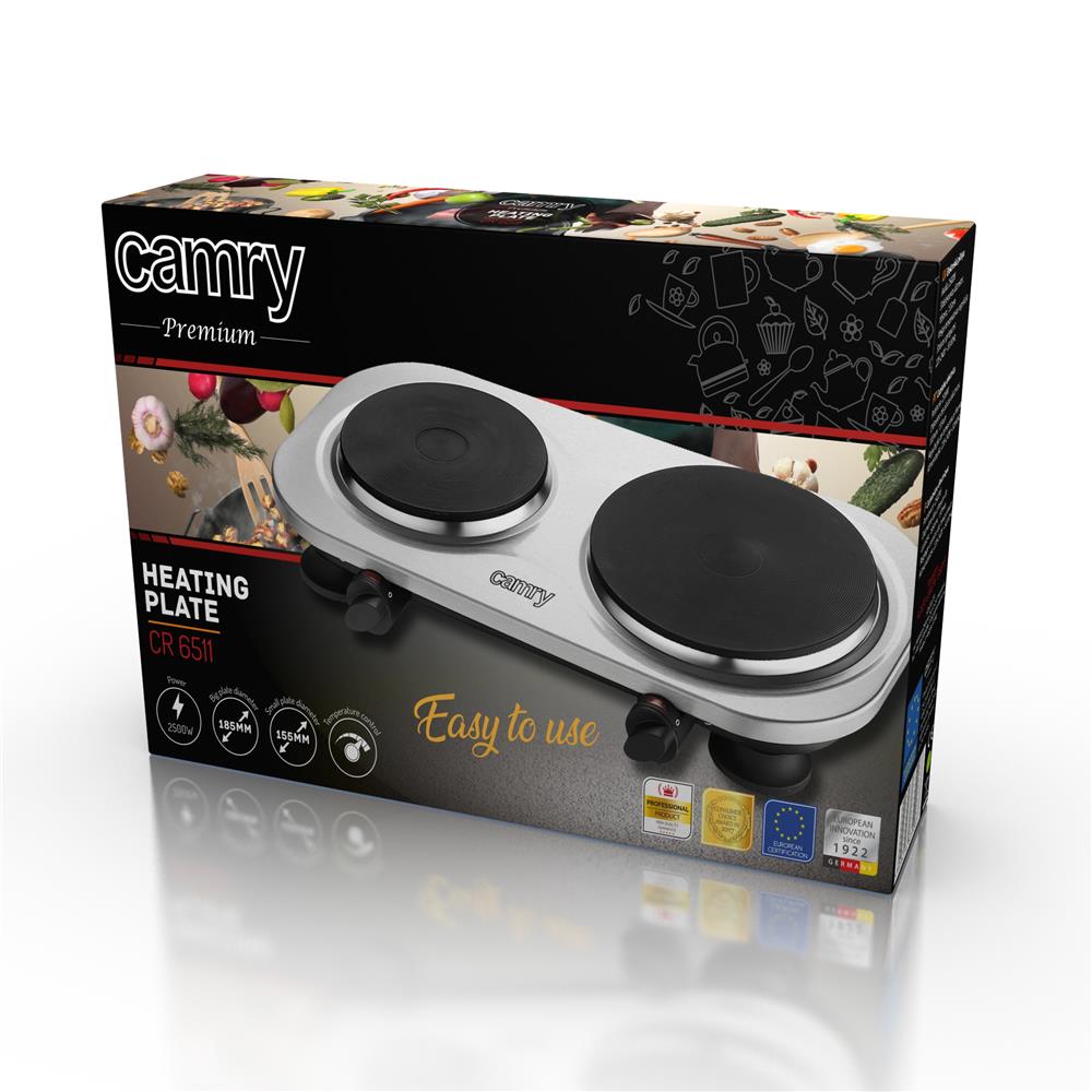 Camry CR 6511 Doppelkochplatte Silber Mini-Kochplatte Kochfeld Camping Garten