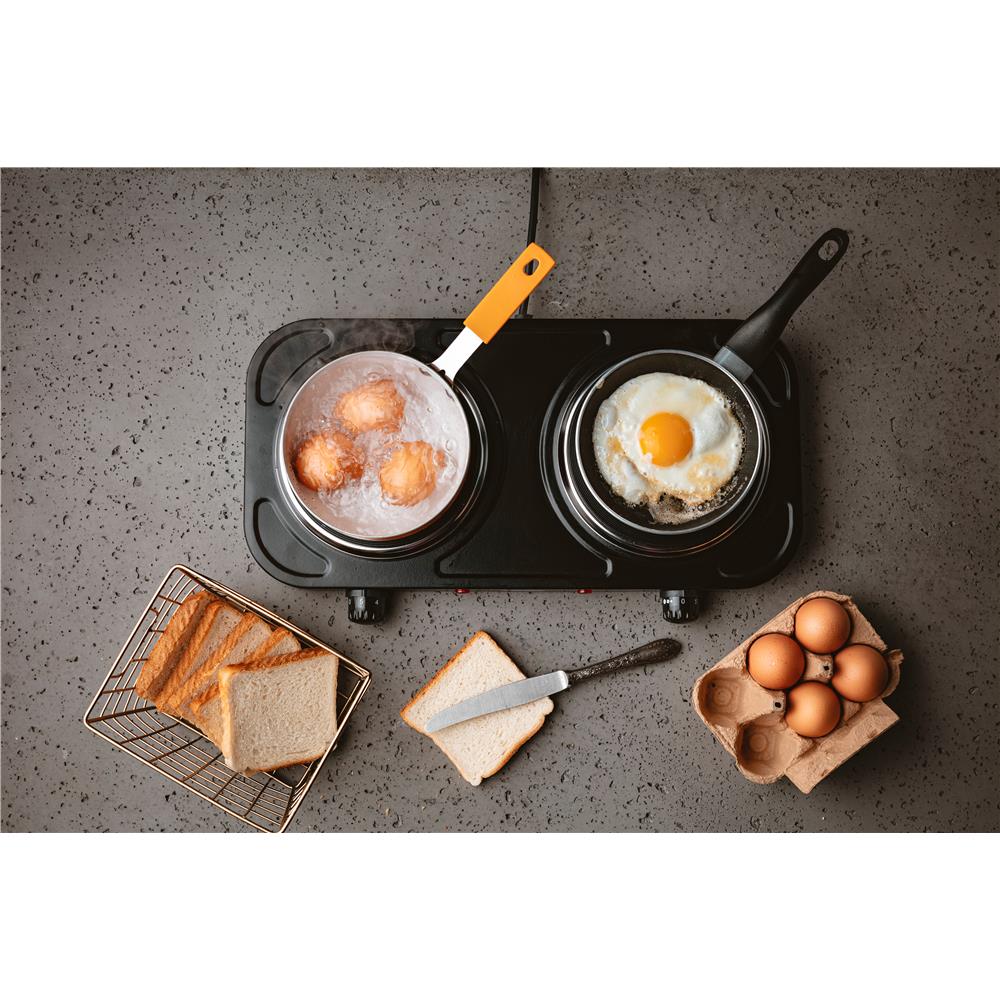 - Doppelkochplatte mit 2000 W Gesamtleistung