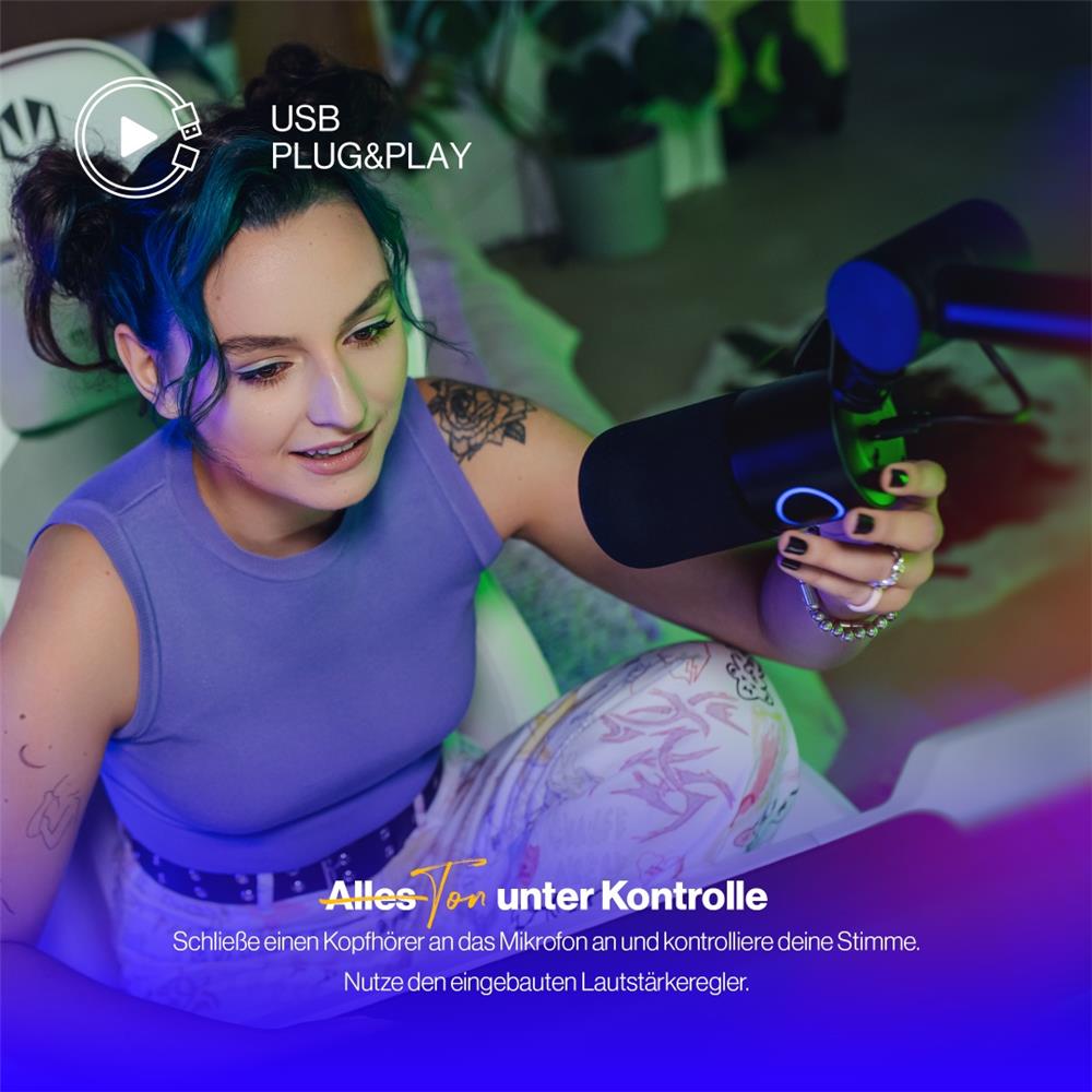 Dank des praktischen USB-A-Kabels dauert das Anschließen des Mikrofons nur Sekunden. Es ist kompatibel mit Windows, macOS und Linux.