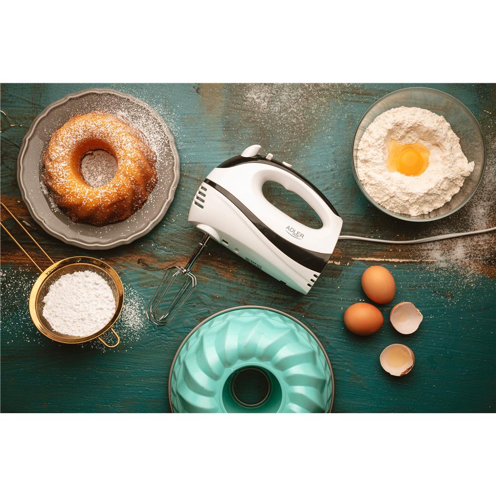 Adler AD 4205 b Handmixer weiß/schwarz mit 5 Geschwindigkeitsstufen 300 Watt