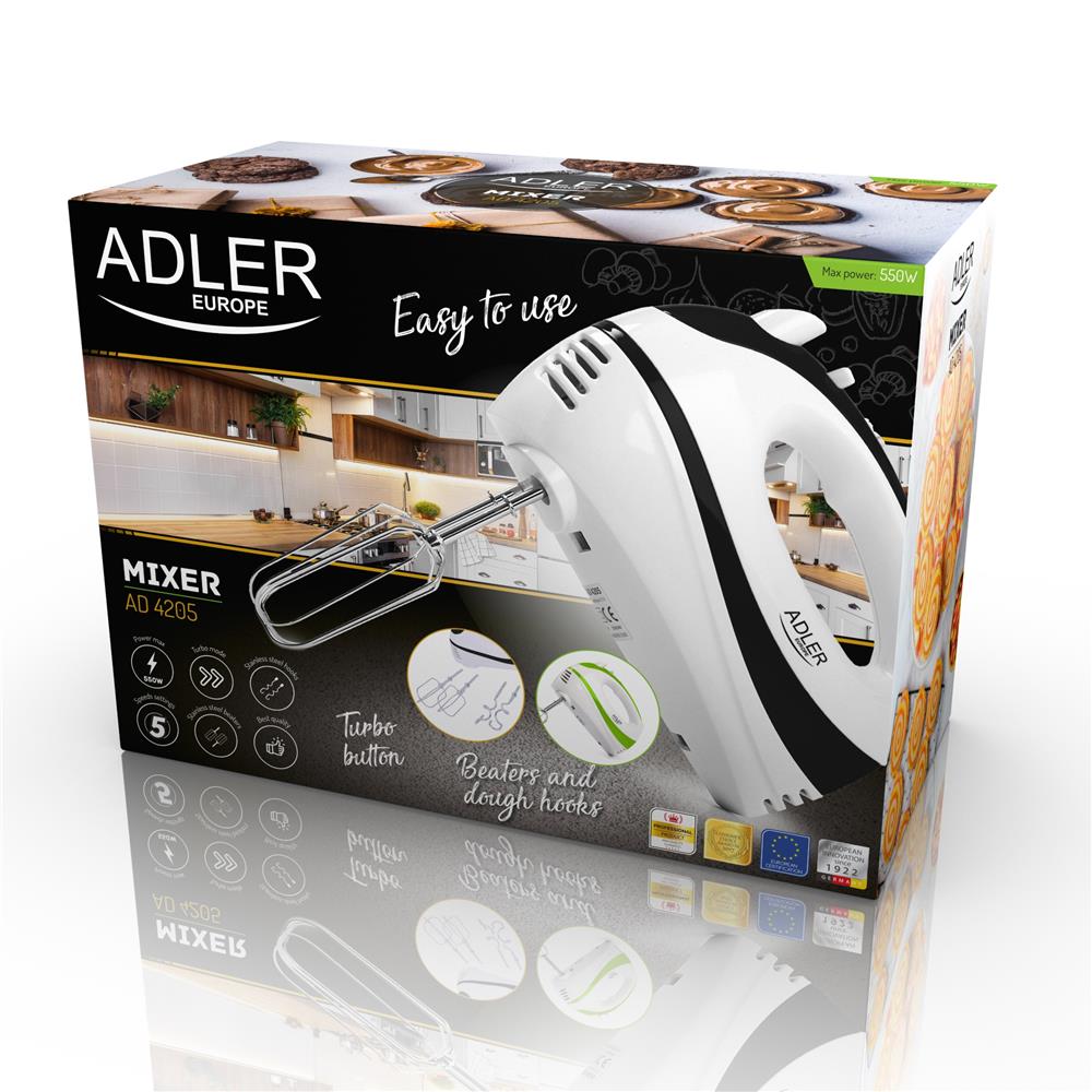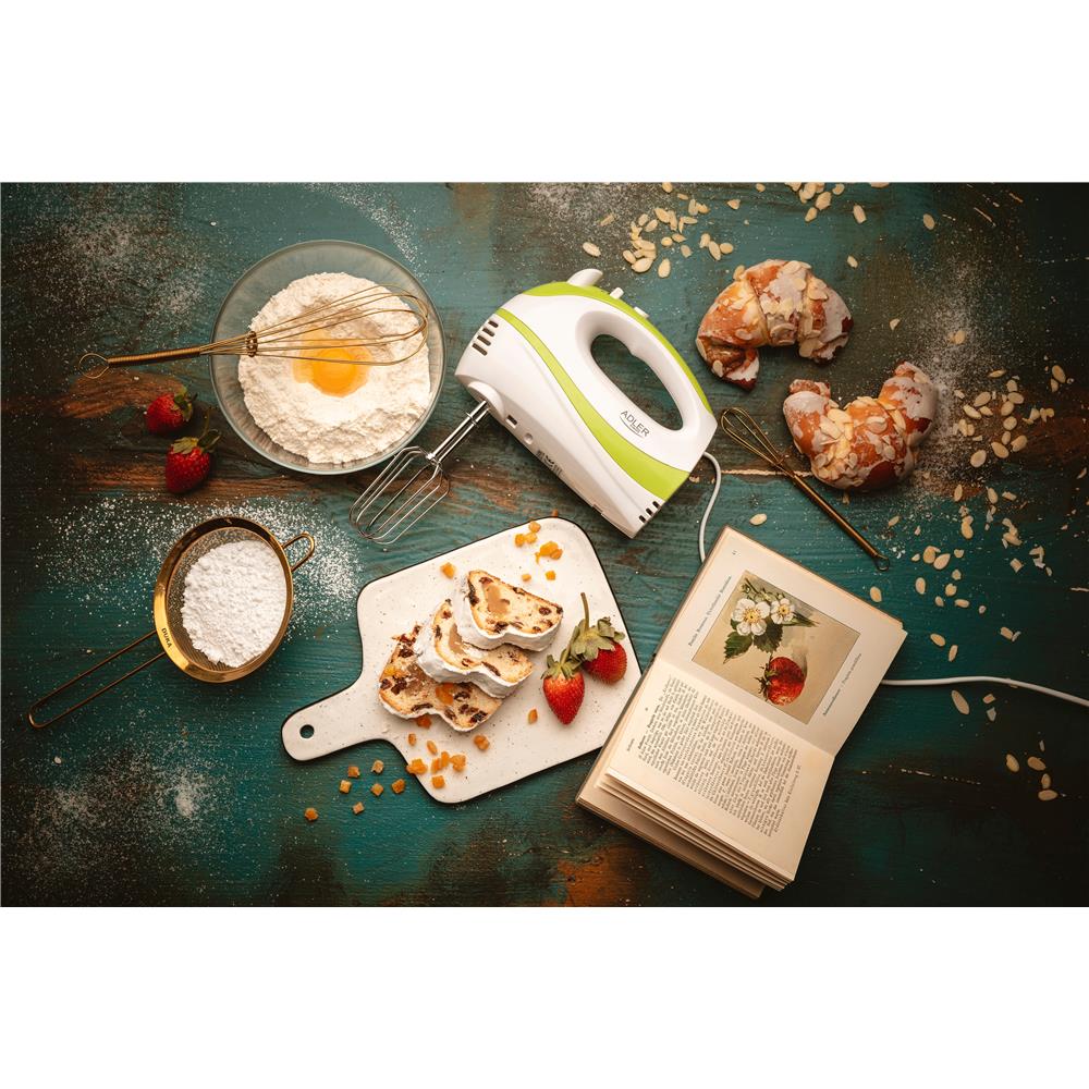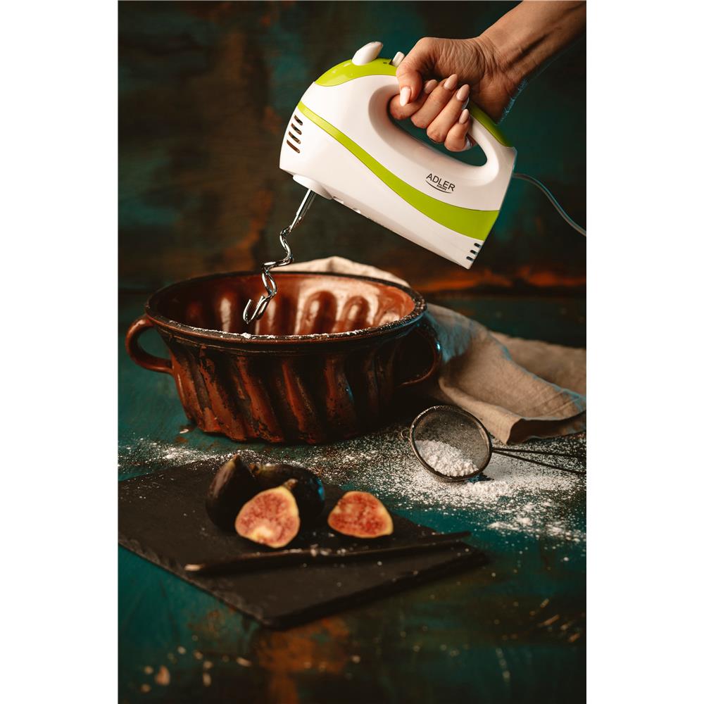 Adler AD 4205g Handmixer in Weiß/Grün, 300 Watt, mit 5 Geschwindigkeitsstufen