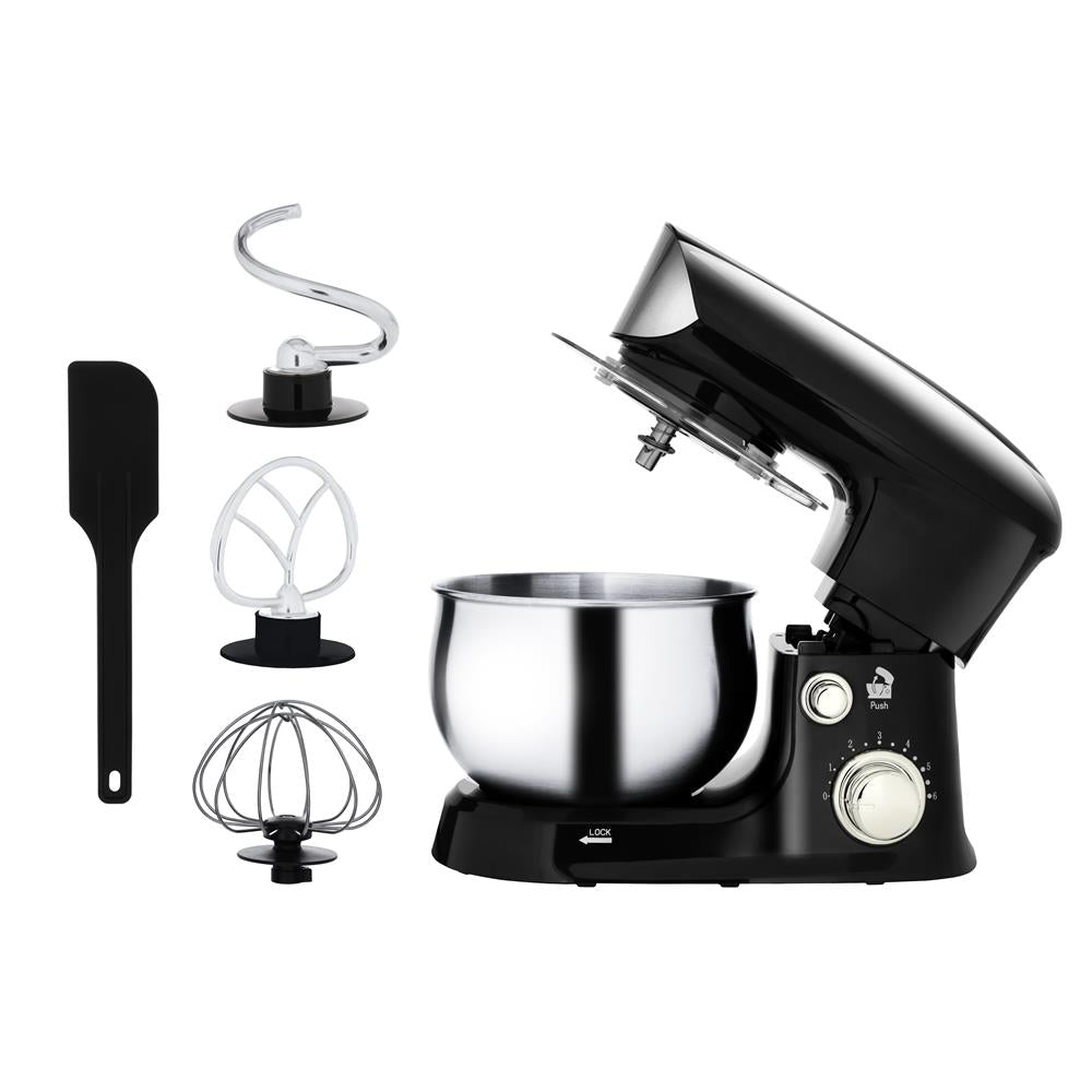 Adler AD 4226b Küchenmaschine in Schwarz, 1200 Watt, mit Rührwerk, Knethaken und Schneebesen