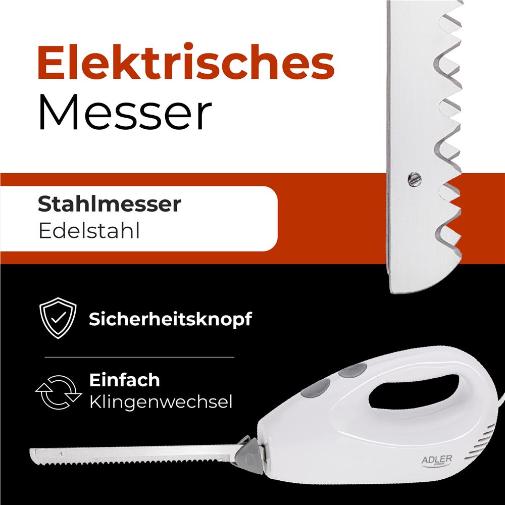 Adler AD 4512 Elektromesser elektrisches Küchenmesser Edelstahl weiß