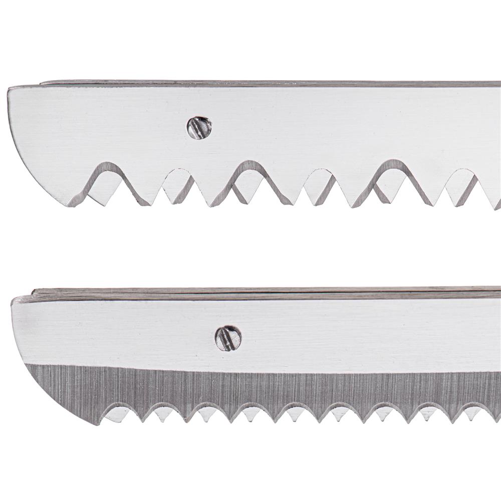 - Zwei Edelstahlklingen-Sets: für Gefriergut & Universalgebrauch
