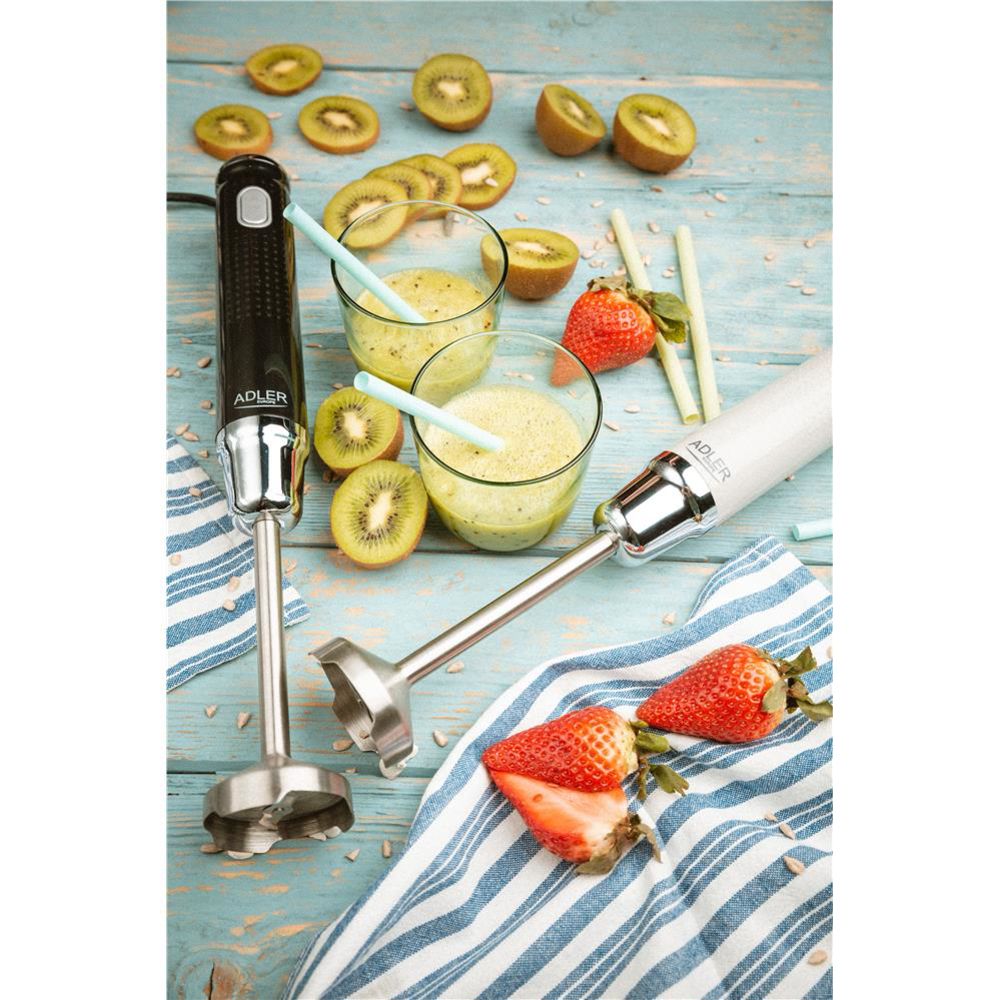Der Stabmixer ADLER AD 4617 ist ein ideales Produkt für Menschen, die auf der Suche nach qualitativ hochwertigen und einfach zu bedienenden Küchenutensilien sind. Möchten Sie sich die Arbeit in der Küche erleichtern? Mit unserem professionellen Mixer können Sie schnell und mühelos einen leckeren Fruchtsmoothie oder eine Gemüsepaste zum Frühstück, eine Suppe oder Soße zum Abendessen oder einen Gemüsecocktail zum Abendbrot zubereiten. Sie müssen nicht in komplizierte Küchengeräte investieren und sich mit verwirrenden Anleitungen herumschlagen! Dank unserer Lösung brauchen Sie nur ein paar Minuten und schon können Sie einen gesunden Snack genießen!