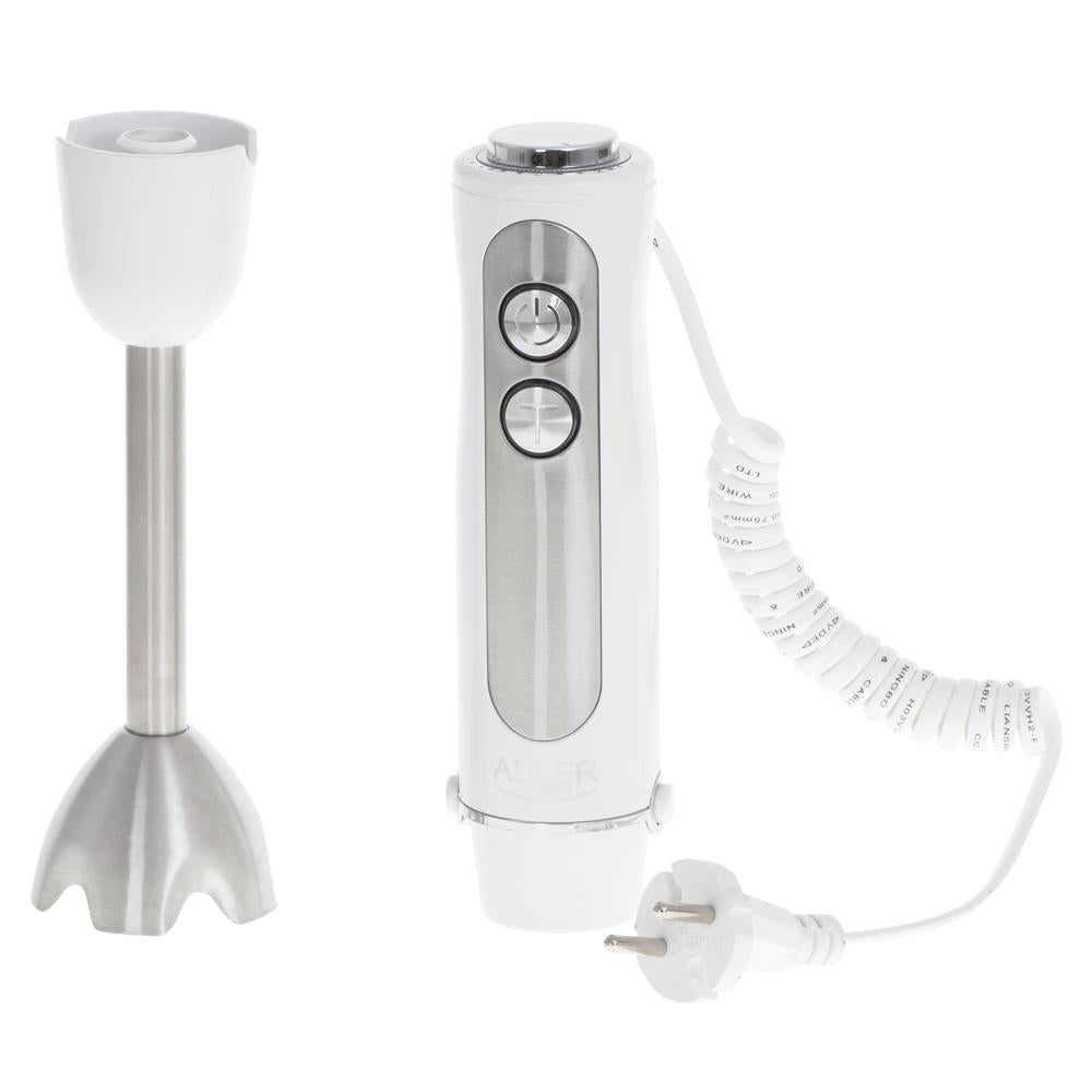 Mit dem Stabmixer AD 4625 können Sie Schaum schlagen, mahlen, reiben und alle Arten von Mousses, Cremesuppen, Piree und andere Gerichte, die eine ähnliche Konsistenz erfordern, leicht zubereiten. Die Spitze des Pürierstabs ist aus robustem Edelstahl gefertigt. Das Gerät verfügt über 5 Geschwindigkeitsstufen und Turbo-Funktionen.