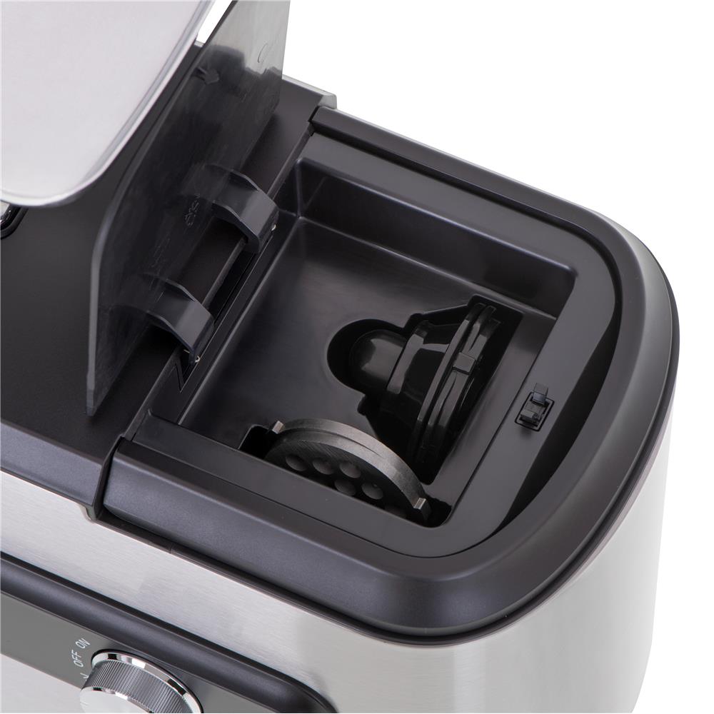 Der Fleischwolf mit Zerkleinerer ADLER AD 4813 ist eines der Geräte, ohne die man sich ein einfaches und angenehmes Kochen nur schwer vorstellen kann. Der Fleischwolf ist mit 3 austauschbaren Edelstahlsieben mit einem Lochdurchmesser von 3mm, 5mm, 7mm und einem Gemüseschneider mit drei Klingen ausgestattet. Das Ganze ist aus langlebigen Materialien gefertigt, leicht zu zerlegen und zu reinigen. Das Gerät verfügt über eine integrierte Aufbewahrung für Deckel und Siebe, damit diese nicht verloren gehen. Die Maschine wird mit drei Edelstahlsieben geliefert. Die Maschine verfügt außerdem über einen Wurstaufsatz und einen Kebbe-Aufsatz, mit denen Sie sich wie ein Profikoch fühlen und gesundes Essen für die Familie zubereiten können.