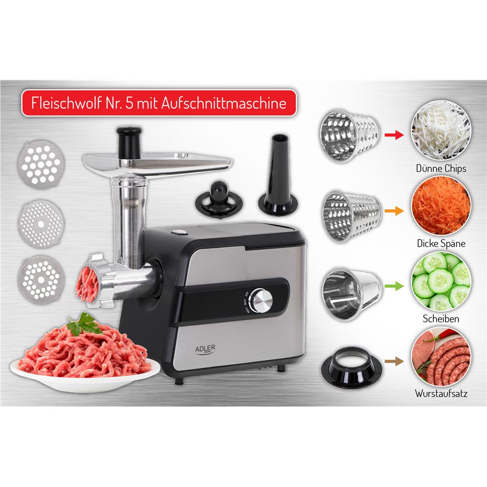 Adler AD 4813 Fleischwolf #5 mit Zerkleinerer elektrisch Wurstfüller Wurstaufsatz Kebbe Aufsatz