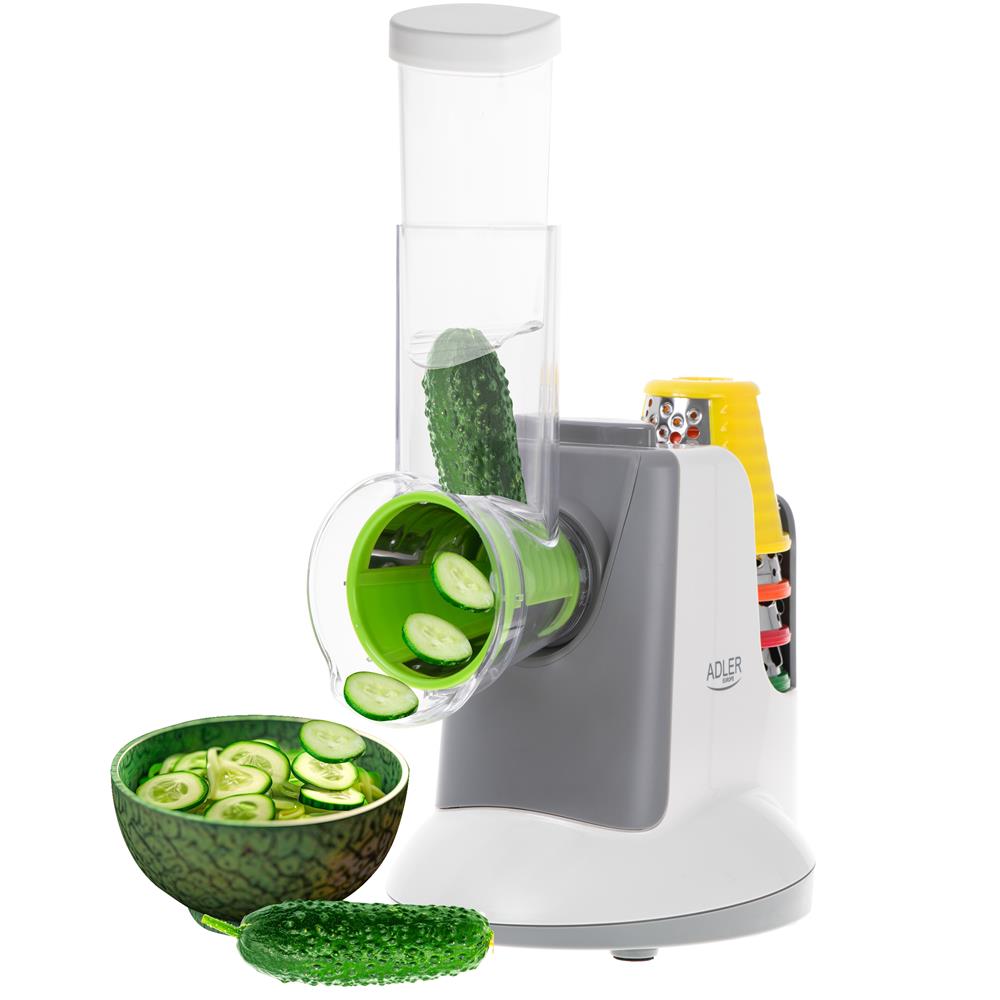 Adler AD 4815 Gemüseschneider weiß 5 Aufsätze grob fein 150 W rutschfeste Füße