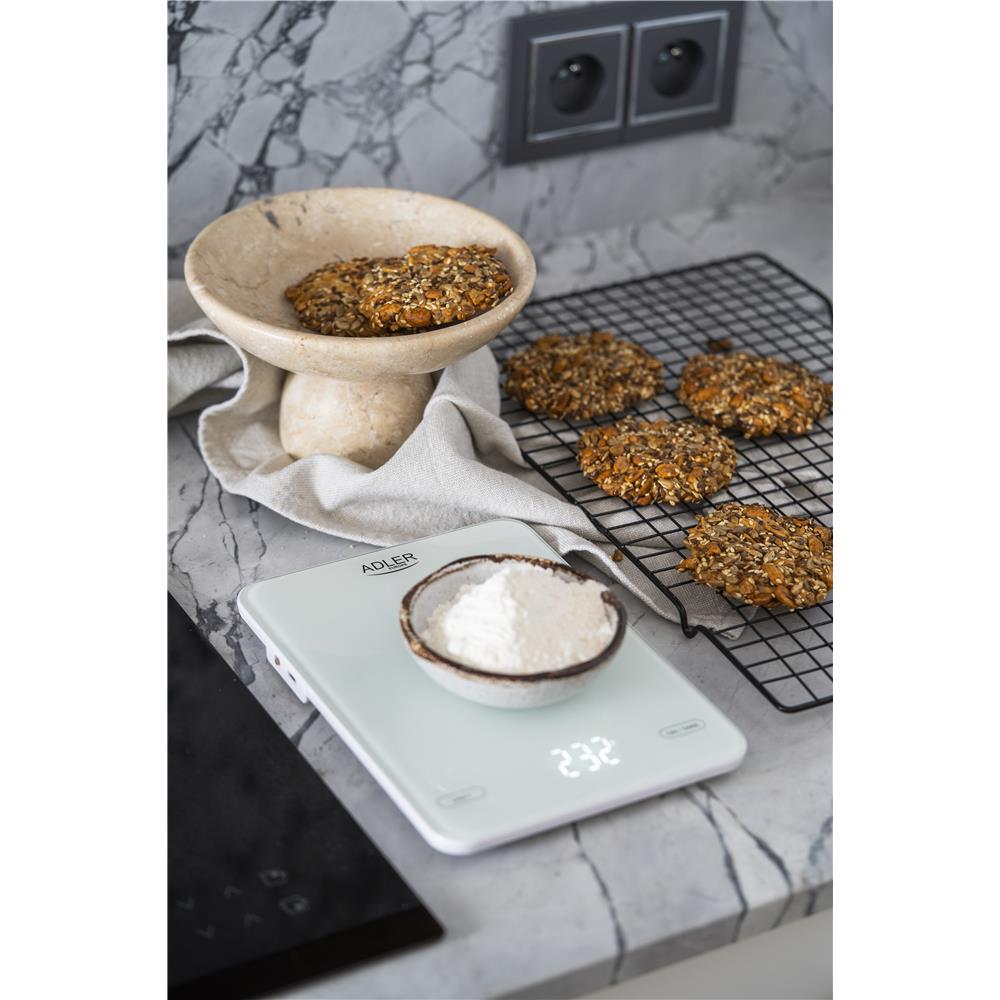 Die Adler AD 3177 Küchenwaage ist eine wirklich innovative Lösung in jeder Küche. Die Kombination eines modernen und eleganten Looks mit modernen Lösungen wird sie zu einem beliebten Helfer in jeder Küche machen. Das Gehäuse ist aus Glas gefertigt. Sie hat eine große Wiegefläche: 16cm x 22cm, was den Bedienungskomfort erhöht. Große und schwere Zutaten sind kein Problem mehr! Die Waage hat eine Tragfähigkeit von bis zu 10 kg. Sie müssen sich auch keine Gedanken mehr über Batterien machen. Die Waage wird über Micro-USB Typ C aufgeladen (Kabel im Lieferumfang enthalten). Folgende Maßeinheiten sind wählbar: g, lb:oz, oz, ml.