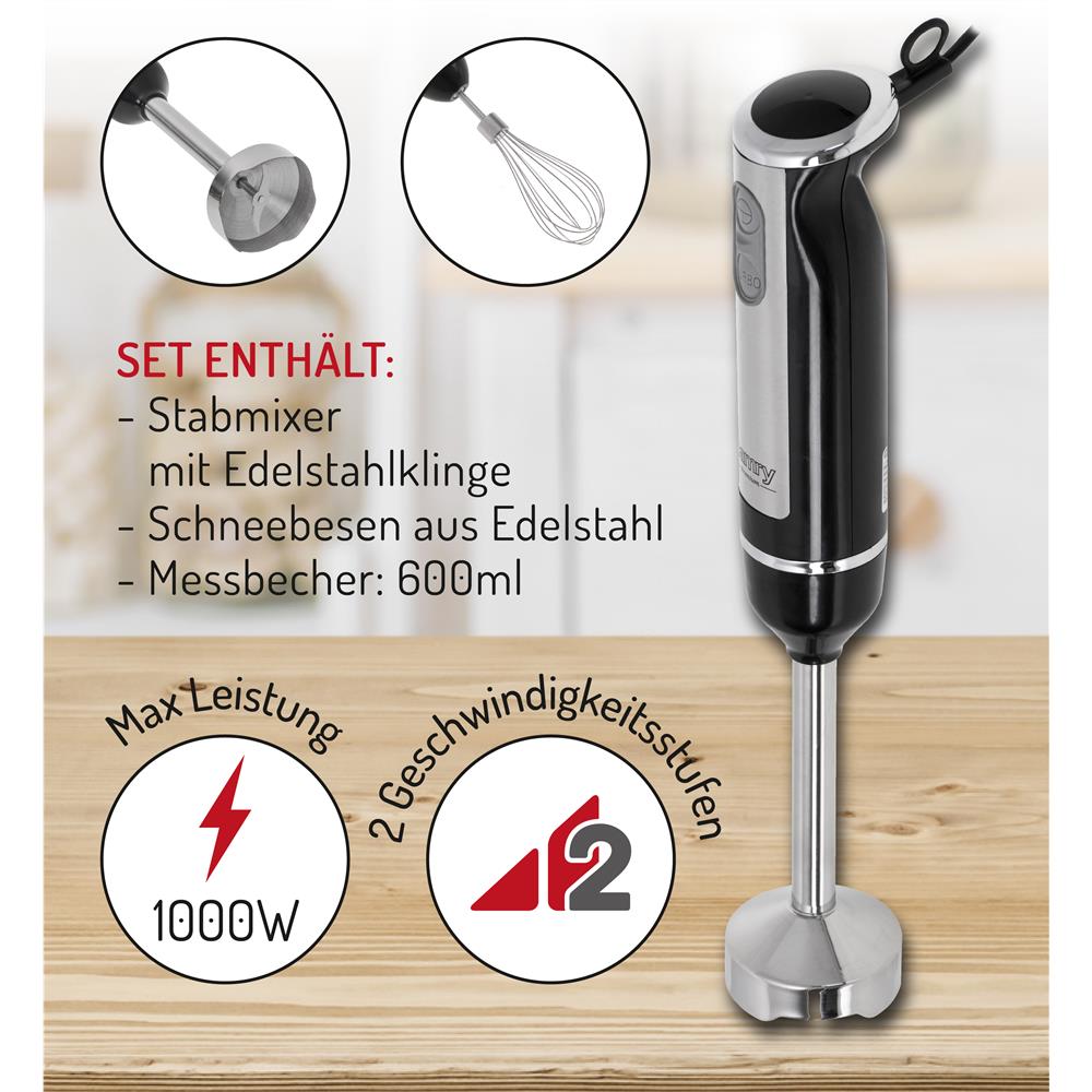 Camry CR 4621 Stabmixer Mini Set 2in1 Schneebesen 600 Watt Handmixer Edelstahl schwarz