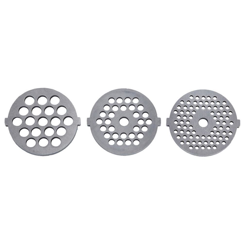 - 5 mm Sieb: mittlere Maschenweite zum Zerkleinern von Fleisch für Koteletts, Burger, Frikadellen und Füllungen für Knödel, Pfannkuchen und Tortillas. Es kann auch zum Zerkleinern von Gemüse, Hartkäse und sogar Nüssen verwendet werden.