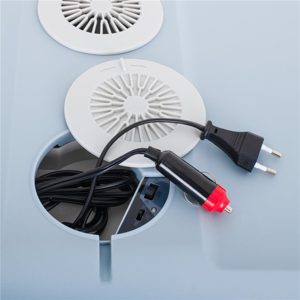 Für maximalen Komfort ist der Autokühler mit Rollen und einem stabilen Griff ausgestattet. Im geschlossenen Zustand überzeugt er als formschöne, weiße Transporttasche. Der Betrieb ist sowohl über den 12-V-Zigarettenanzünder im Auto als auch über eine 230-V-Steckdose möglich – die passenden Kabel sind im Lieferumfang enthalten.