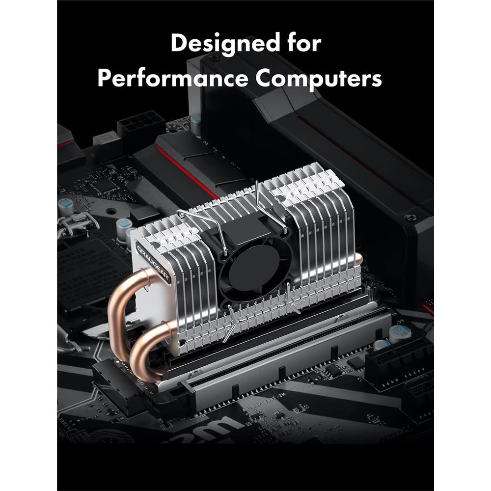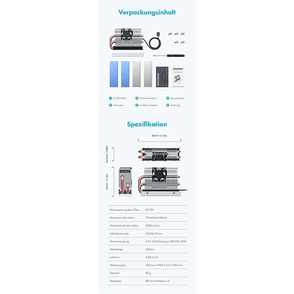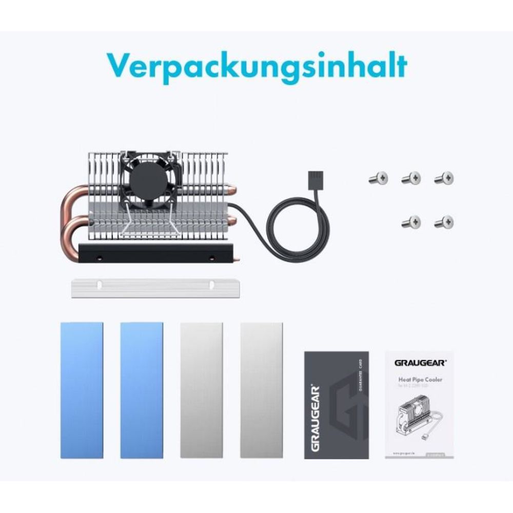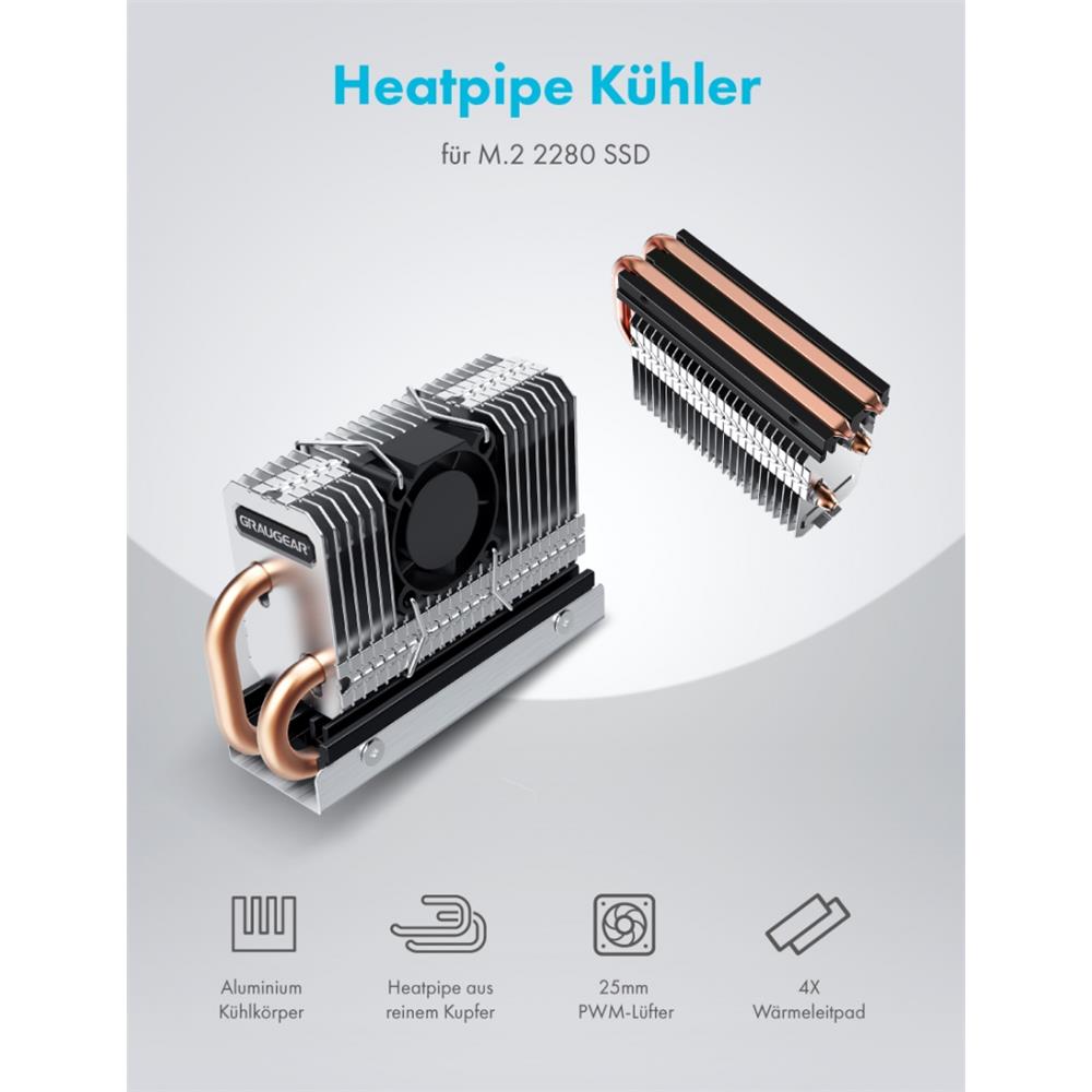 GRAUGEAR Heatpipe Kühler für M.2 NVMe 2280 SSD mit PWM Lüfter regelbar Aluminium Festplattenkühler