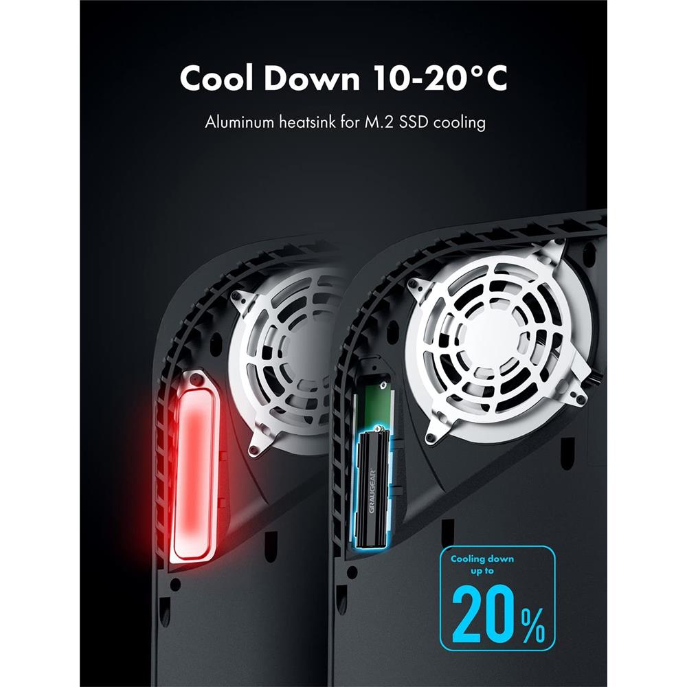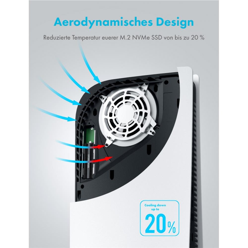Die Aluminiumlegierung im Rillendesign erhöht die Wärmeabfuhr mit einem Kühleffekt von ca. 15°C – 20°C (variiert je nach Umgebung). Deine M.2 SSD wird so auf einer sicheren Temperatur gehalten um Überhitzung und Drosselung zuvermeiden, und verbessert damit die Leistung Deiner PlayStation 5 bzw. Deines Computers.