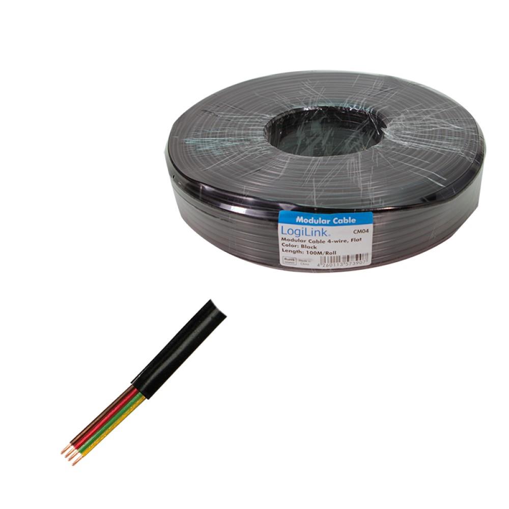 LogiLink Telefonkabel Kabel flach 4-Adrig 100m pro Rolle 4 x 6 x 0.12mm, schwarz *NEU*