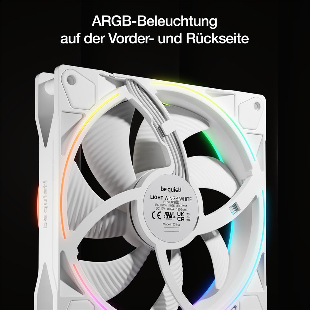 be quiet! Light Wings 140mm PWM Reverse White 7 invertierte Lüfterblätter hoher Airflow