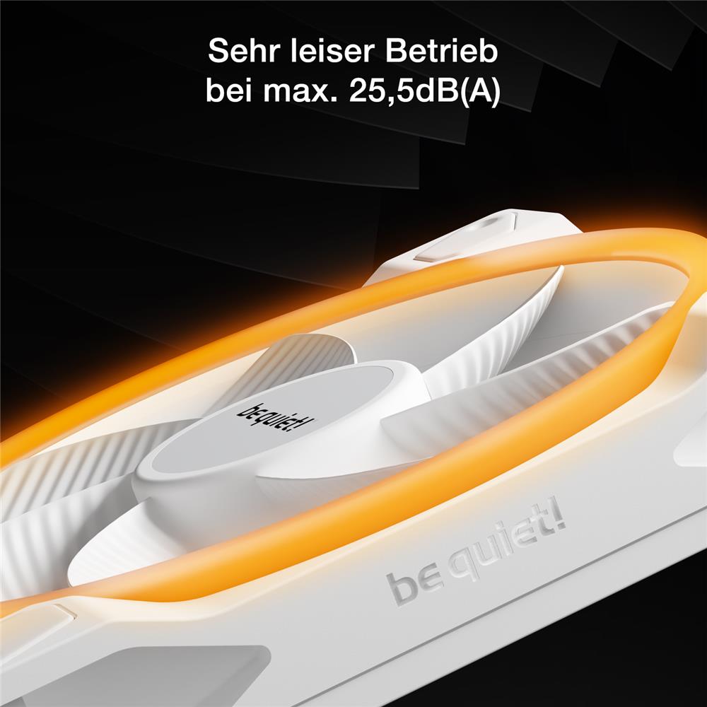 Ein rundum optimierter Lüfterrahmen und Impeller ermöglichen den leisen Betrieb, für den be quiet! bekannt ist. Maximal 25,5dB(A) bei voller Drehzahl beweisen, dass die Beleuchtung den sehr leisen und leistungsstarken Betrieb nicht ersetzt, sondern ergänzt. All diese Eigenschaften machen Light Wings 140mm PWM Reverse White zum Lüfter der Wahl für leise Showcases und Gaming-Systeme gleichermaßen.