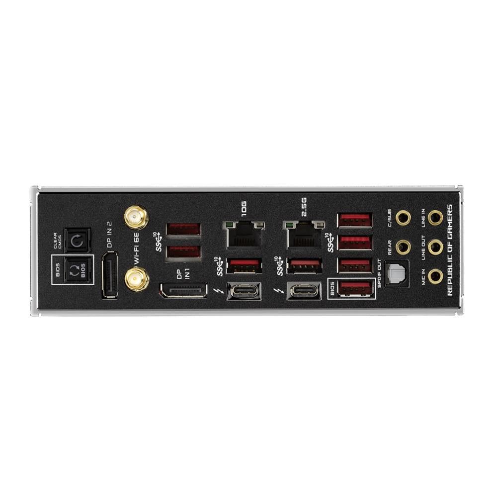 - Umfassendes Kühldesign: Erweiterte VRM-Kühlkörper, Aluminium-E/A-Abdeckung, 5 M.2-Kühlkörper, ROG Water-Cooling Zone.
