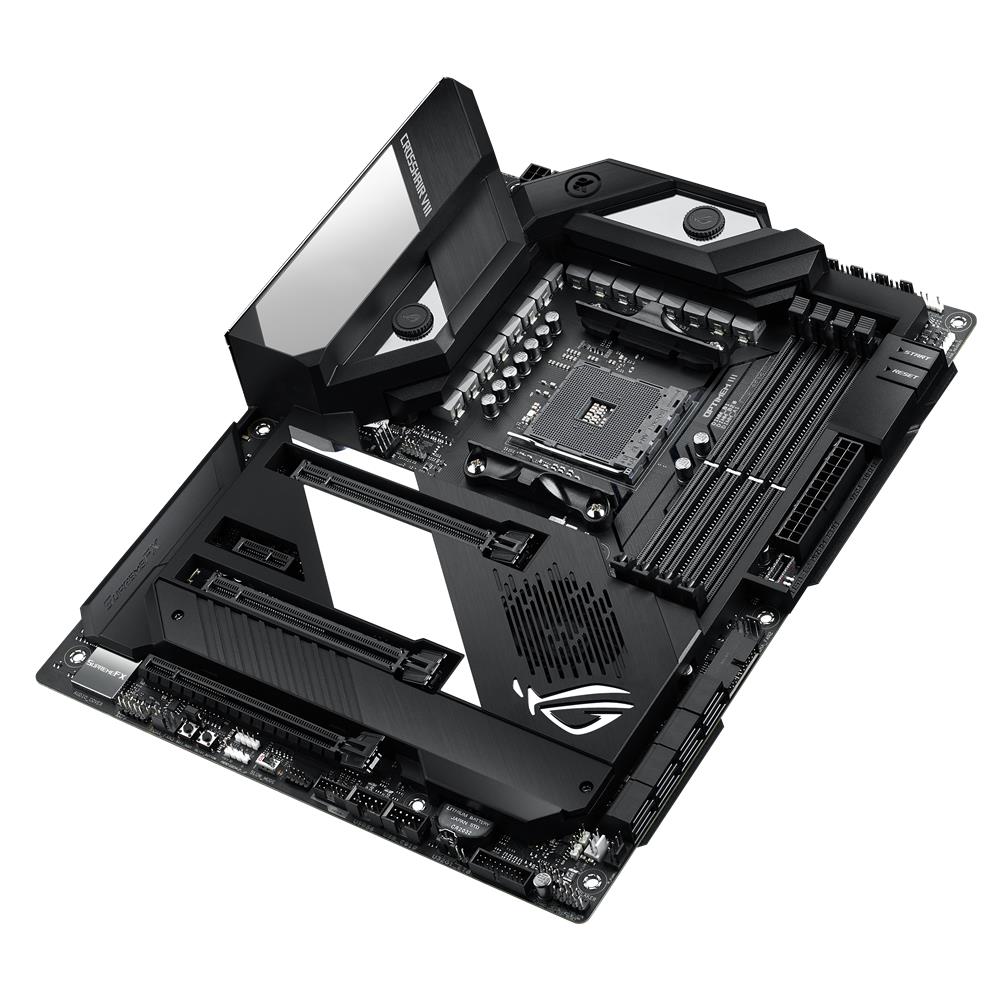 - Umfassendes Kühldesign: Integrierter Crosschill EK III, ein aktiver PCH-Kühler, M.2-Aluminiumkühler und die ROG Cooling Zone.