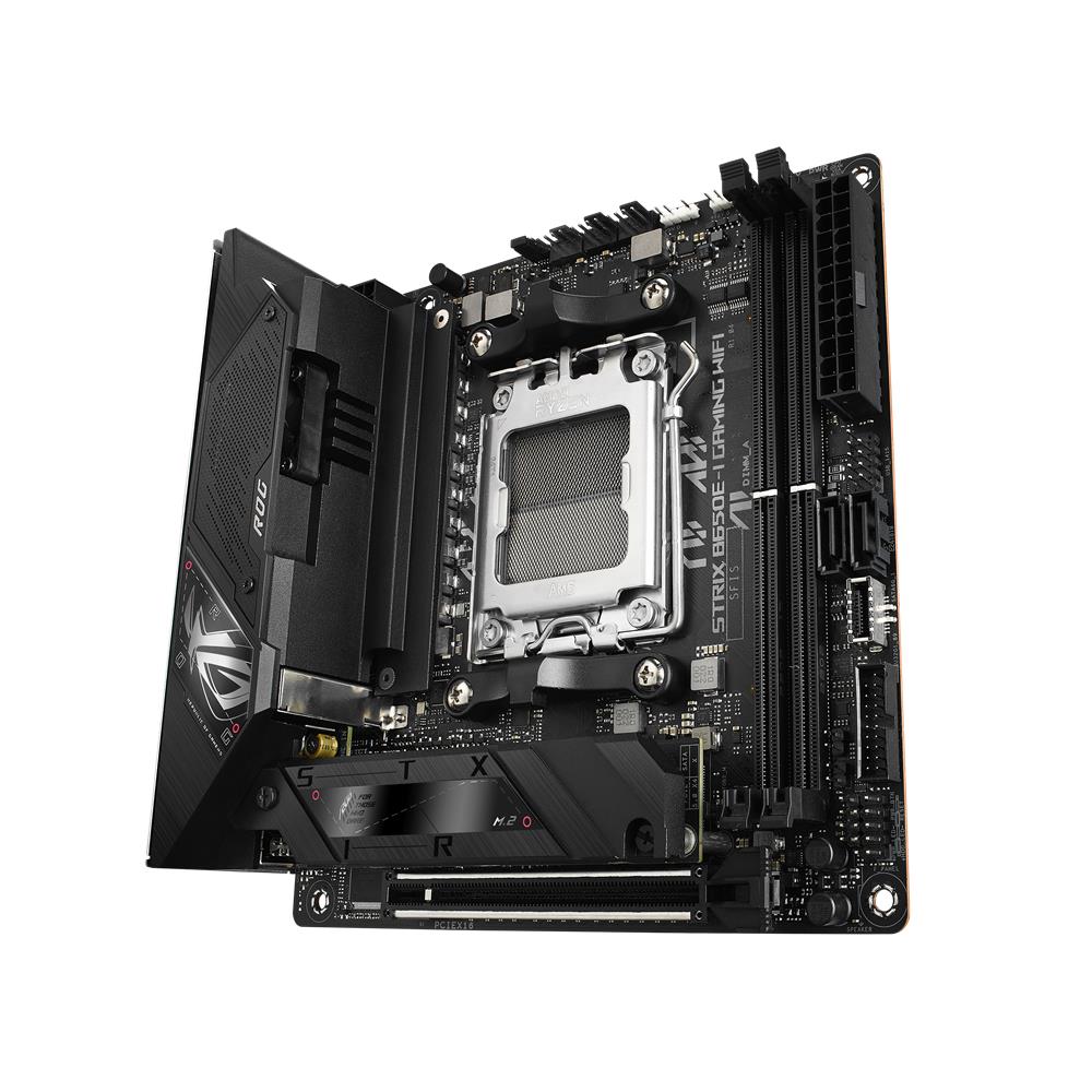 AMD B650 Mini-ITX-Mainboard mit 10 + 2 Power Stages, DDR5-Unterstützung, PCIe® 5.0 NVMe® SSD-Unterstützung, einem PCIe 5.0 x16 Safeslot, USB 3.2 Gen 2 Type-C®-Anschluss, Onboard WiFi 6E und Aura Sync RGB-Beleuchtung