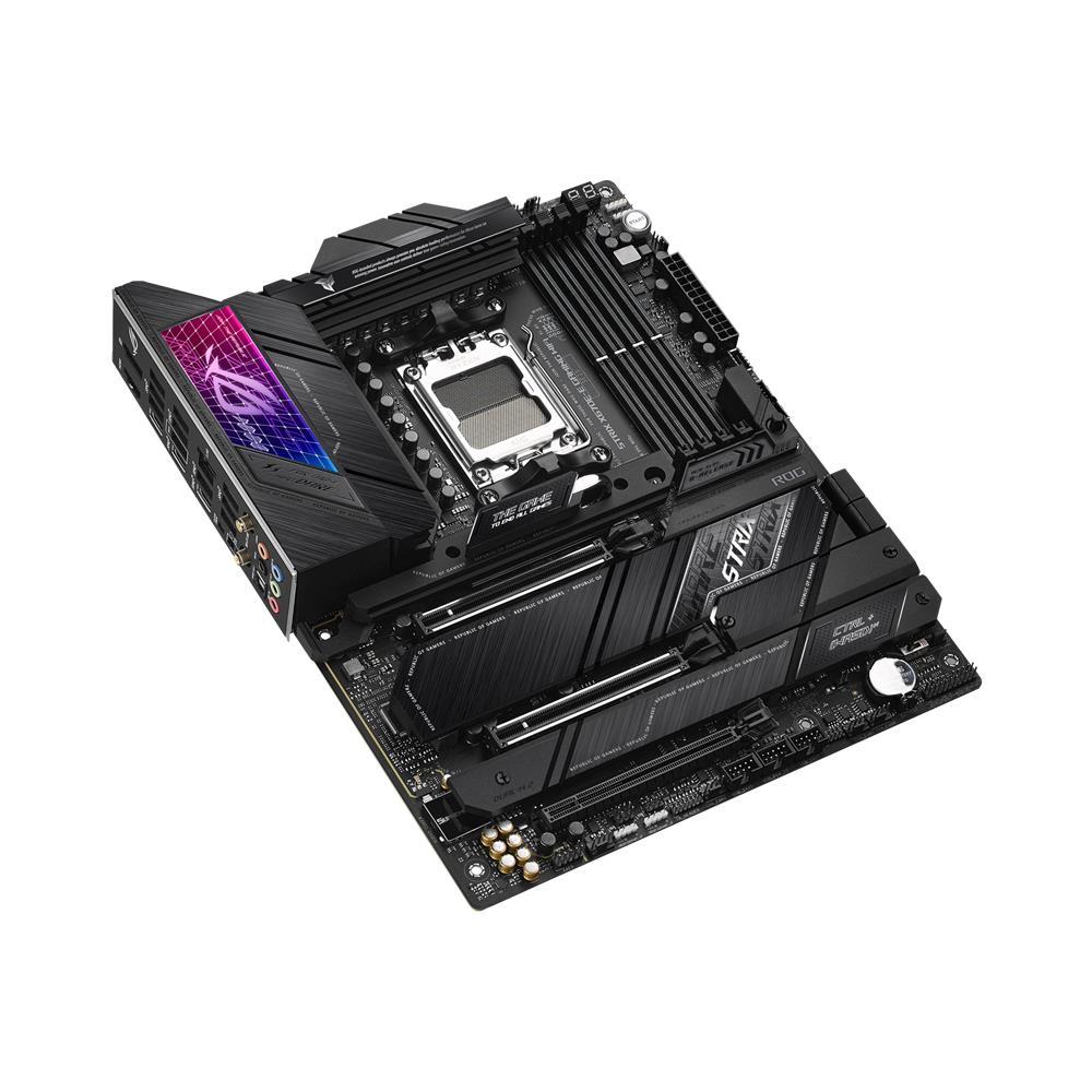 AMD X670 ATX-Mainboard mit 18 + 2 Power Stages, DDR5-Unterstützung, zwei PCIe® 5.0 x16 Slots, PCIe Slot Q-Release, vier M.2 Slots mit Kühlkörpern, PCIe 5.0 NVMe® SSD-Unterstützung, M.2 Combo-Sink, M.2 Backplate, Massive M.2 Heatsink, USB 3.2 Gen 2x2, onboard WiFi 6E, Dynamic OC Switcher, Core Flex, AI Cooling II und Aura Sync RGB-Beleuchtung