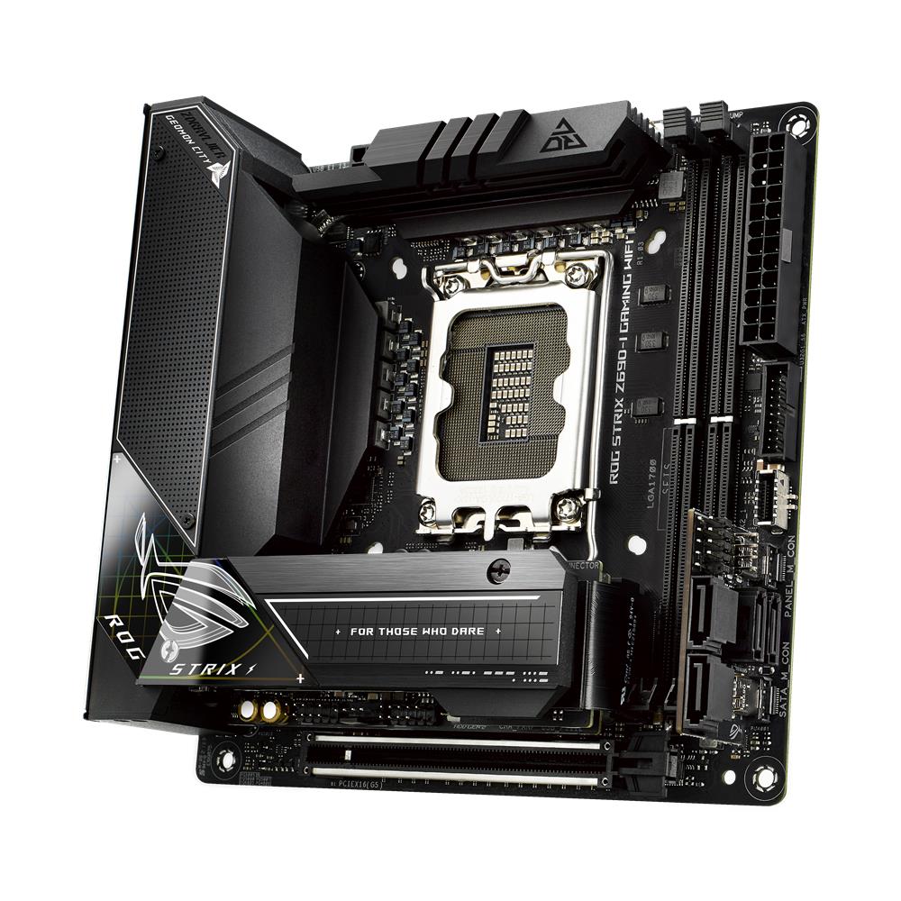 Das ROG Strix Z690-I Gaming WiFi bietet eine erstklassige Stromversorgung und eine Triple-Deck-Kühlung in einem kompakten Mini-ITX-Formfaktor, um die volle Leistung der Intel® Core™-Prozessoren der 12ten Generation zu entfesseln. Frameraten und Ladezeiten können durch die brandneue Unterstützung für DDR5-Speicher und PCIe® 5.0 noch weiter gesteigert werden. Außerdem sorgen das integrierte WiFi 6E und die PCIe 4.0 M.2-Steckplätze für blitzschnelle Leistung in einer Vielzahl von Szenarien. Darüber hinaus vereinfachen die DIY-freundlichen Innovationen den PC-Bau, so dass auch Anfänger schnell zu ernsthaften Spielen kommen können.