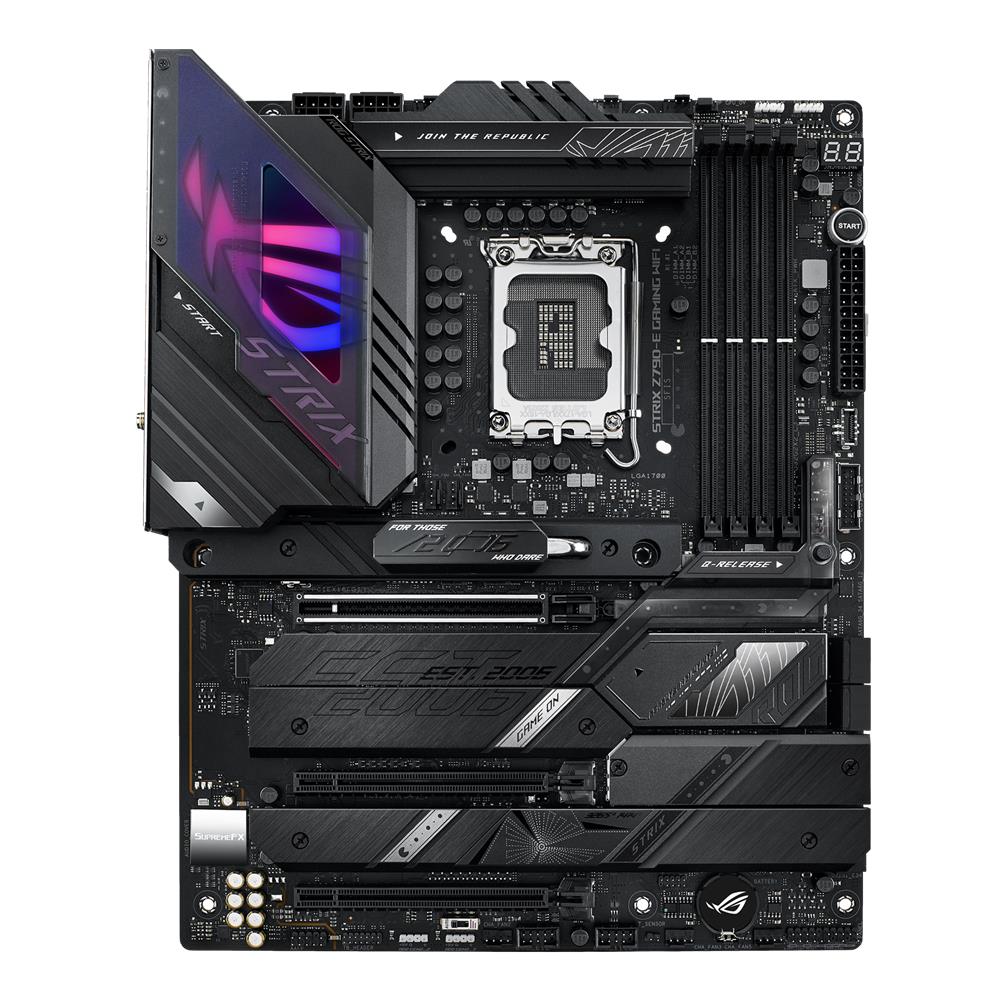 Intel® Z790 LGA 1700 ATX-Mainboard mit 18 + 1 Leistungsstufen, DDR5, fünf M.2-Steckplätzen, PCIe® 5.0 NVMe® SSD-Steckplatz mit M.2 Combo-Sink, PCIe 5.0 x16 SafeSlot mit Q-Release, WiFi 6E, USB 3.2 Gen 2x2 Type-C® Anschluss an der Rückseite und an der Vorderseite mit PD 3.0 bis zu 30W, AI Overclocking, AI Cooling II und Aura Sync RGB-Beleuchtung