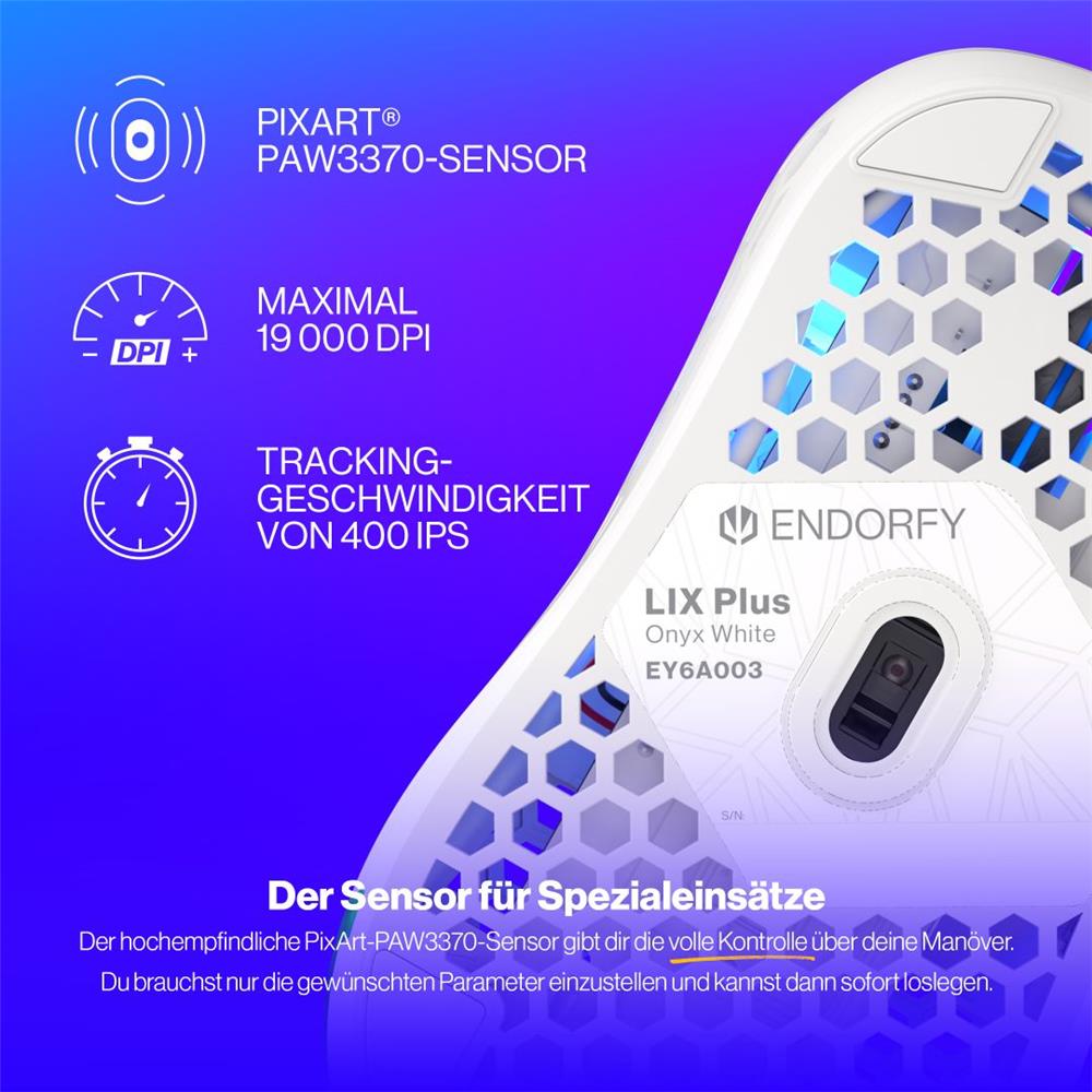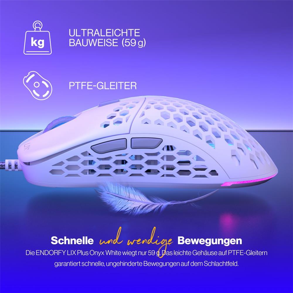 ENDORFY LIX Plus, Ultraleichte Gaming-Maus (59 g), 19000 DPI, Weiß | EY6A003