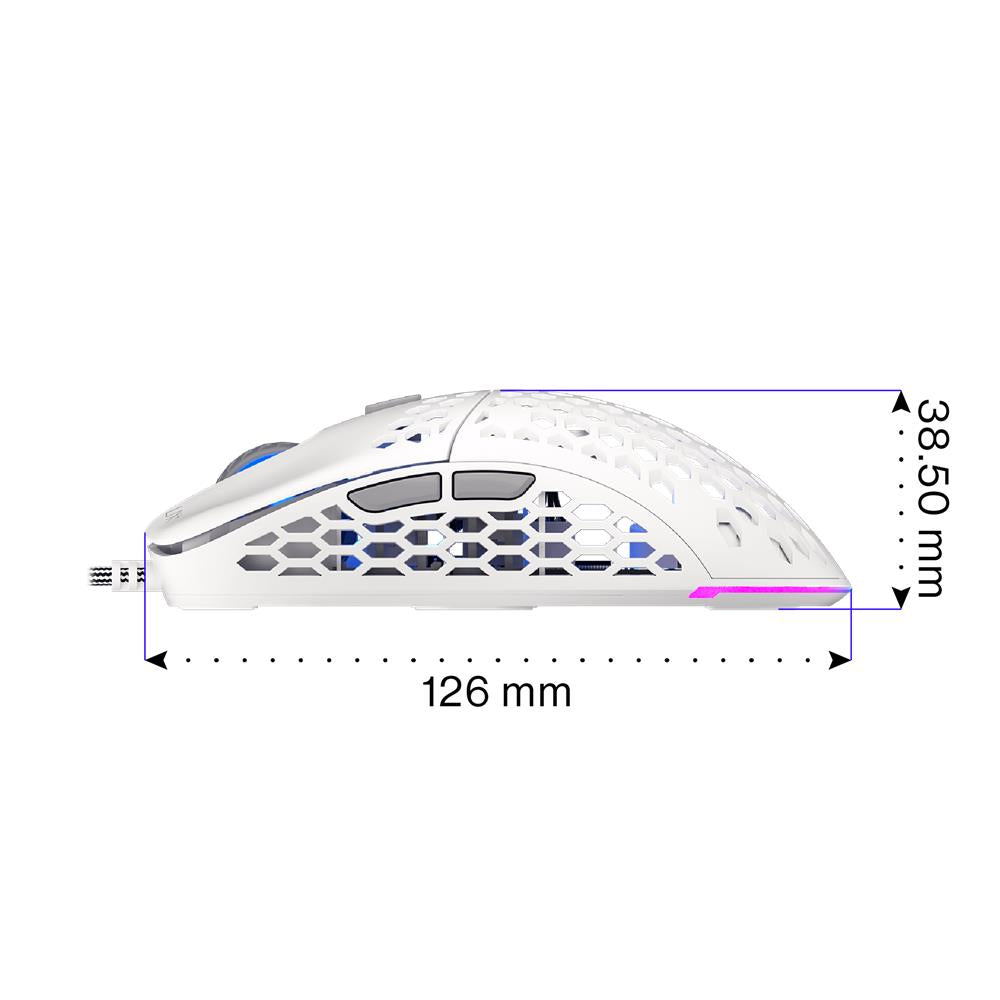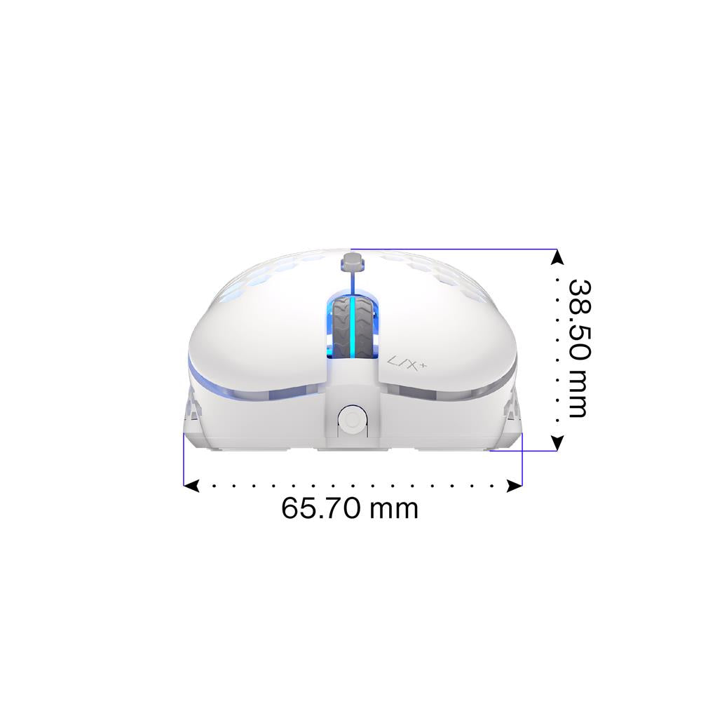 Das Gehäusedesign nennt sich „Wabenstruktur“ und ist eines der Geheimnisse hinter dem ultraleichten Gewicht der LIX Plus Onyx White. Aber es macht die Maus nicht nur schlank, es verhindert auch, dass deine Hand schwitzt – selbst während Klick-Marathons. In römischen Zahlen bedeutet „LIX“ 59. Macht Sinn, oder?