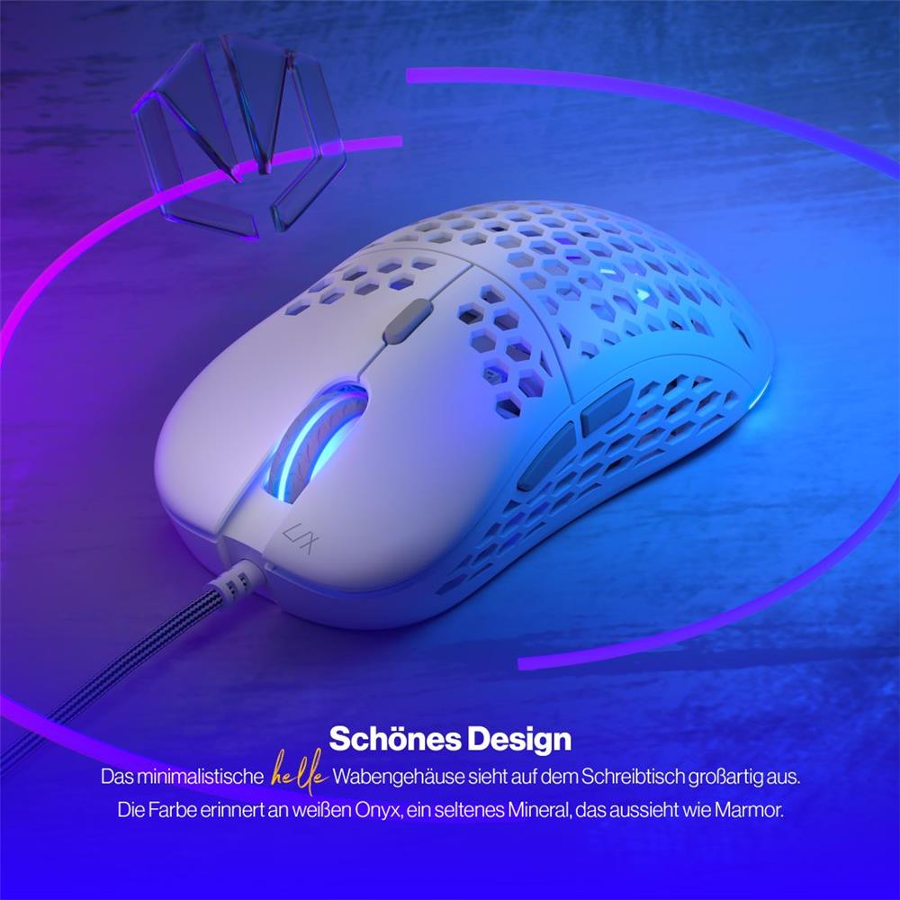 Berühmt unter Kennern für seine hohe Festigkeit und außergewöhnliche Schönheit ist der Edelstein wie eine bessere und hübschere Version von Marmor. Glücklicherweise ist die Maus nicht schwer wie ein Stein – mit nur 59 g ist die LIX Plus Onyx White ein wahrer Leichtgewicht-Champion.