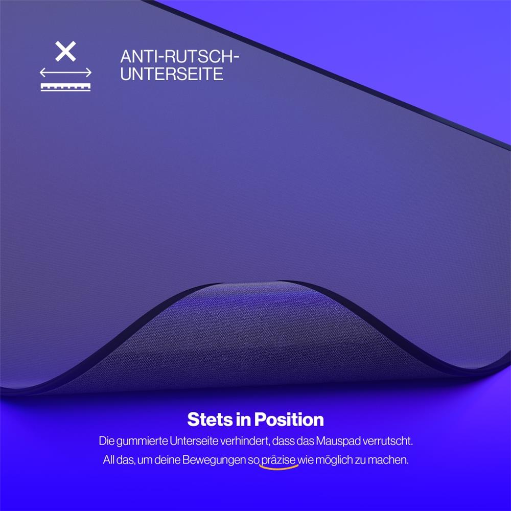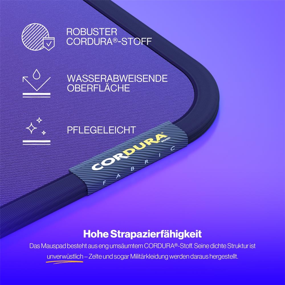 Auch wenn das Cordura Speed XL groß genug ist, um solche Situationen zu vermeiden, haben wir dafür gesorgt, dass es immer fest auf dem Tisch bleibt. Eine hochwertige Gummibasis verhindert das Verrutschen des Mauspads. Es geht darum, deine Bewegungen so präzise wie möglich zu machen – weil wir wissen, dass es bei Arbeit und Spiel keinen Platz für zufällige Fehlbewegungen gibt.